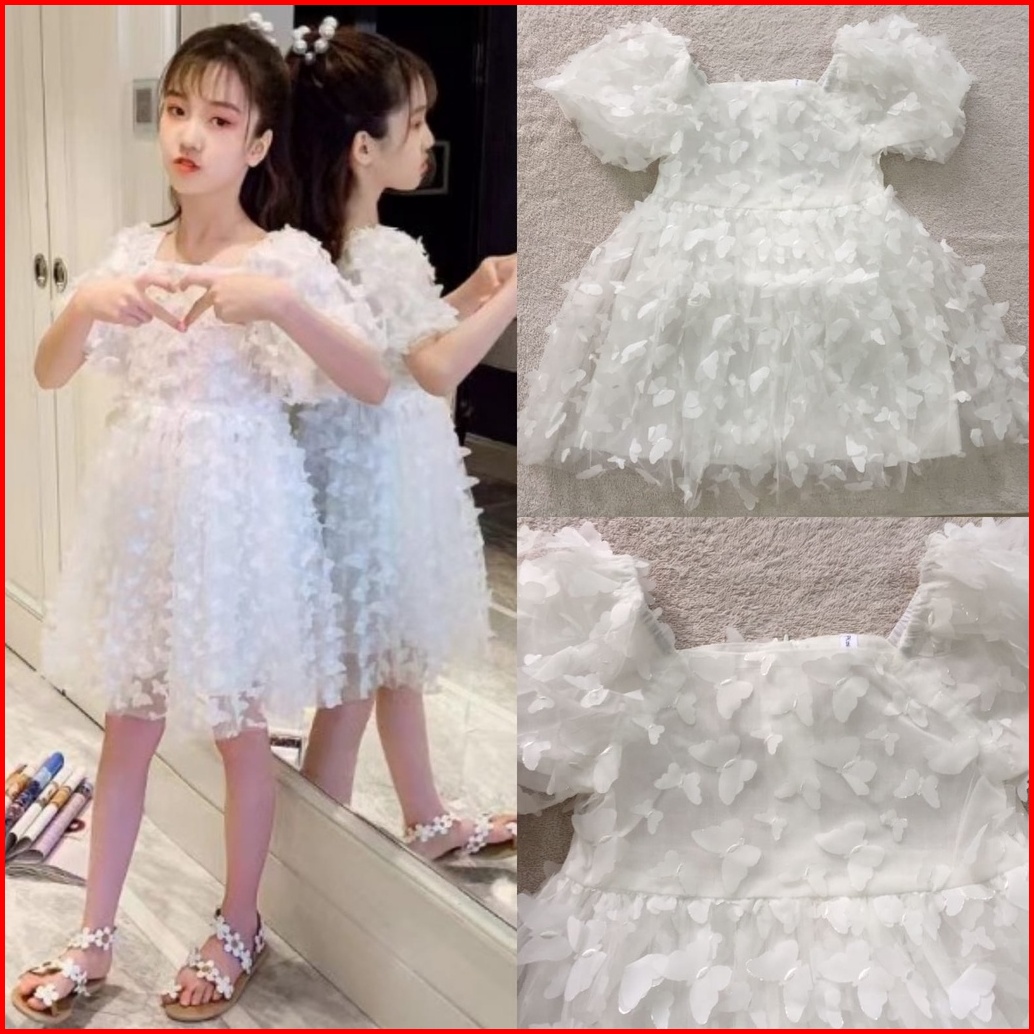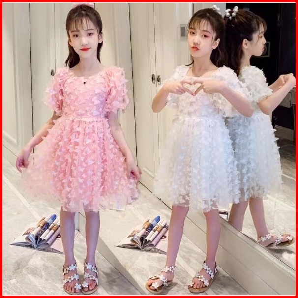 4-9th Dress Putih Bersih Anak Kupu 3d Impor Gaun Pesta Pink Lengan Balon Import Gaya Korea