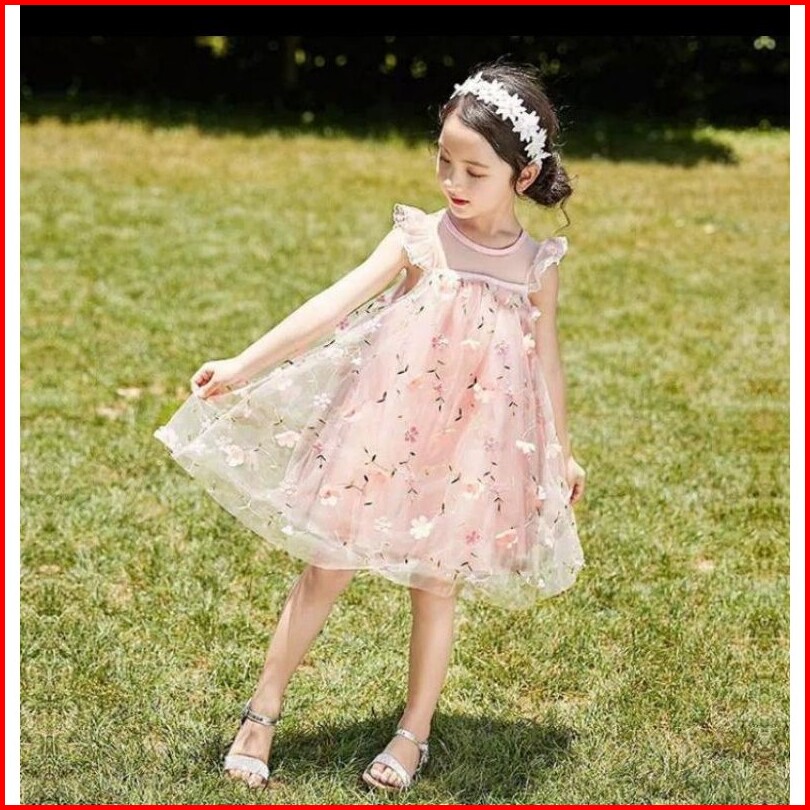 Dress Anak Import Dress Anak Perempuan Tile Bunga Bordir Impor Gaun Pesta Anak Impor