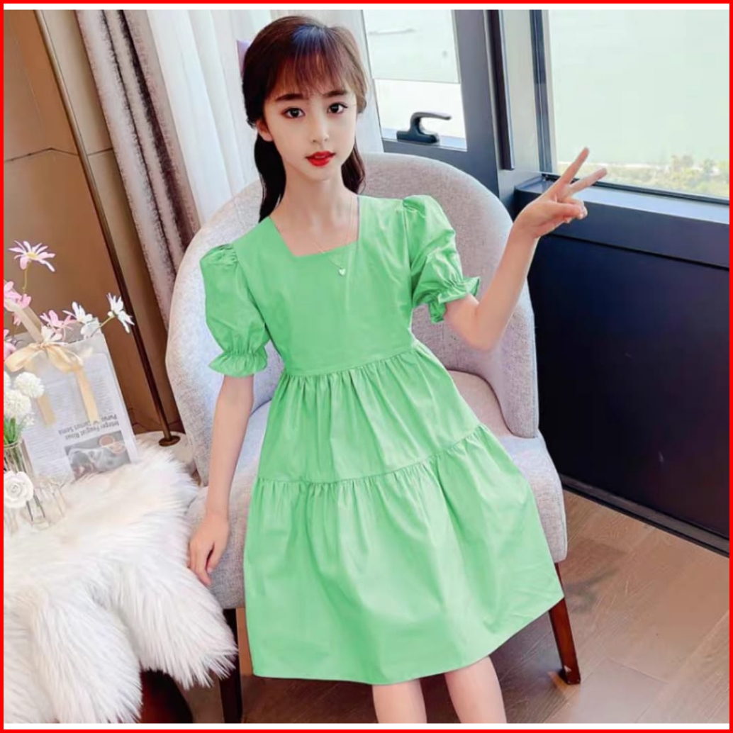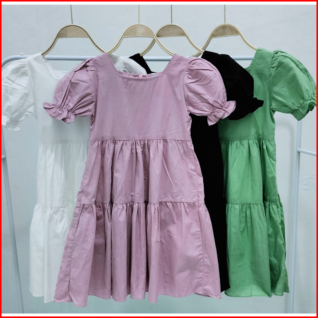 Leia - 03 Dress Anak Perempuan Korea Gaun Anak Lengan Pendek Katun Import Usia 3-7 Tahun