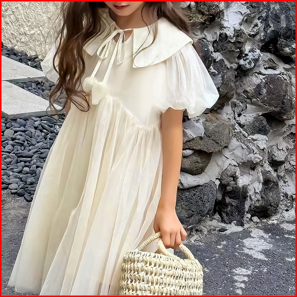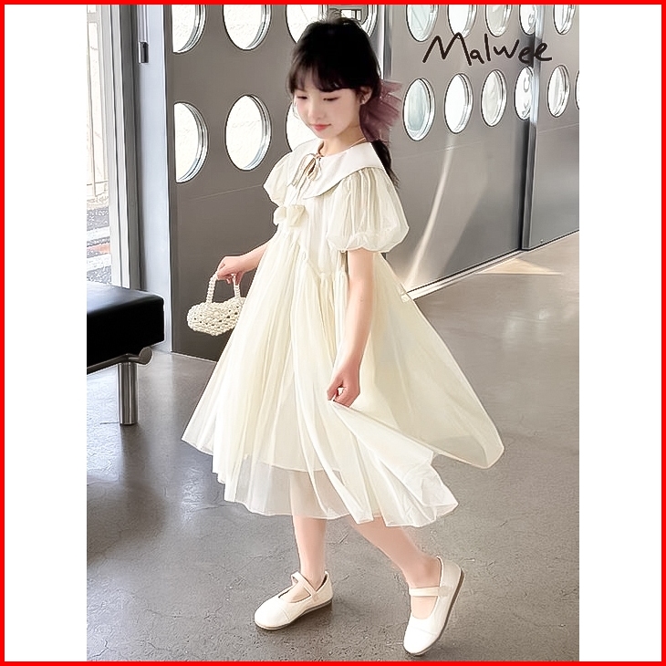 Malwee 2-10 Tahun Dress Anak Perempuan Musim Panas Lengan Gelembung Peri Gaun Nt07