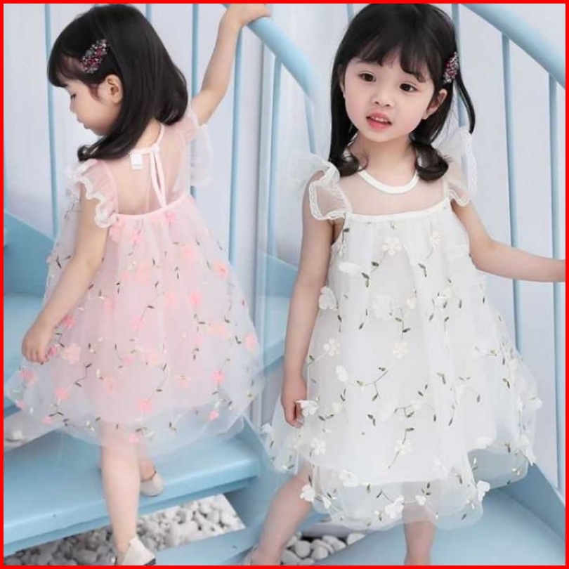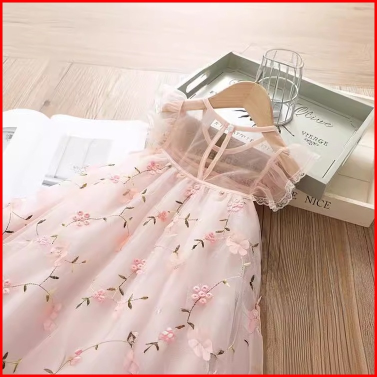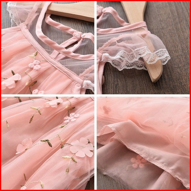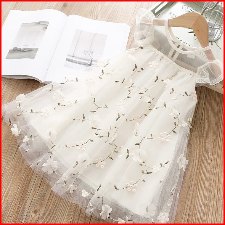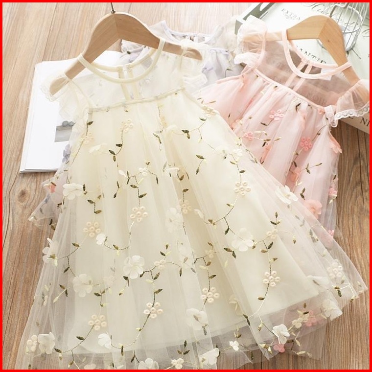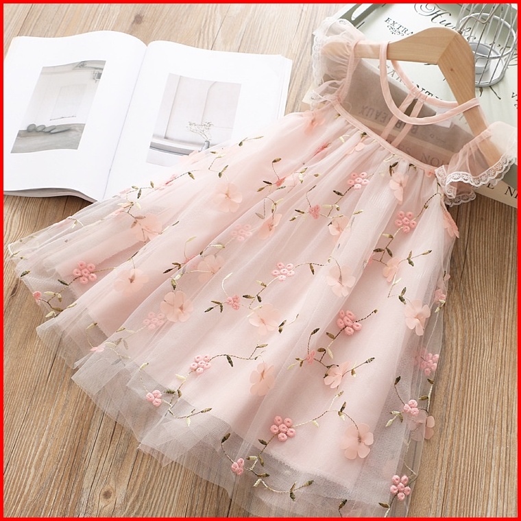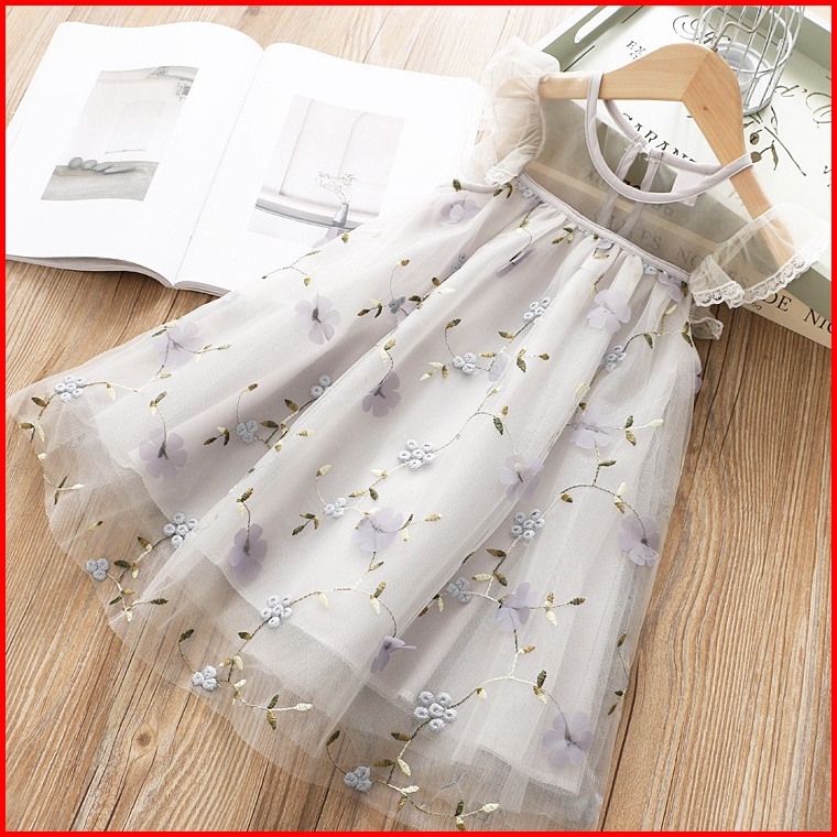 Haasya Kids 2-6 Tahun Gaun Jala Renda Bunga Tiga Dimensi Bordir Anak-anak Musim Panas Versi Korea Dari Gaun Bayi Putri G