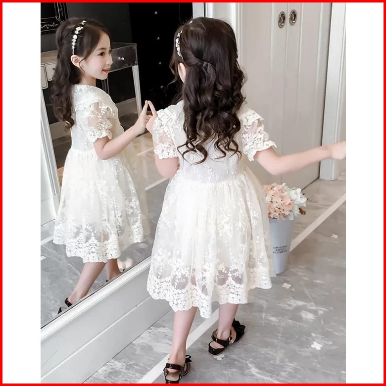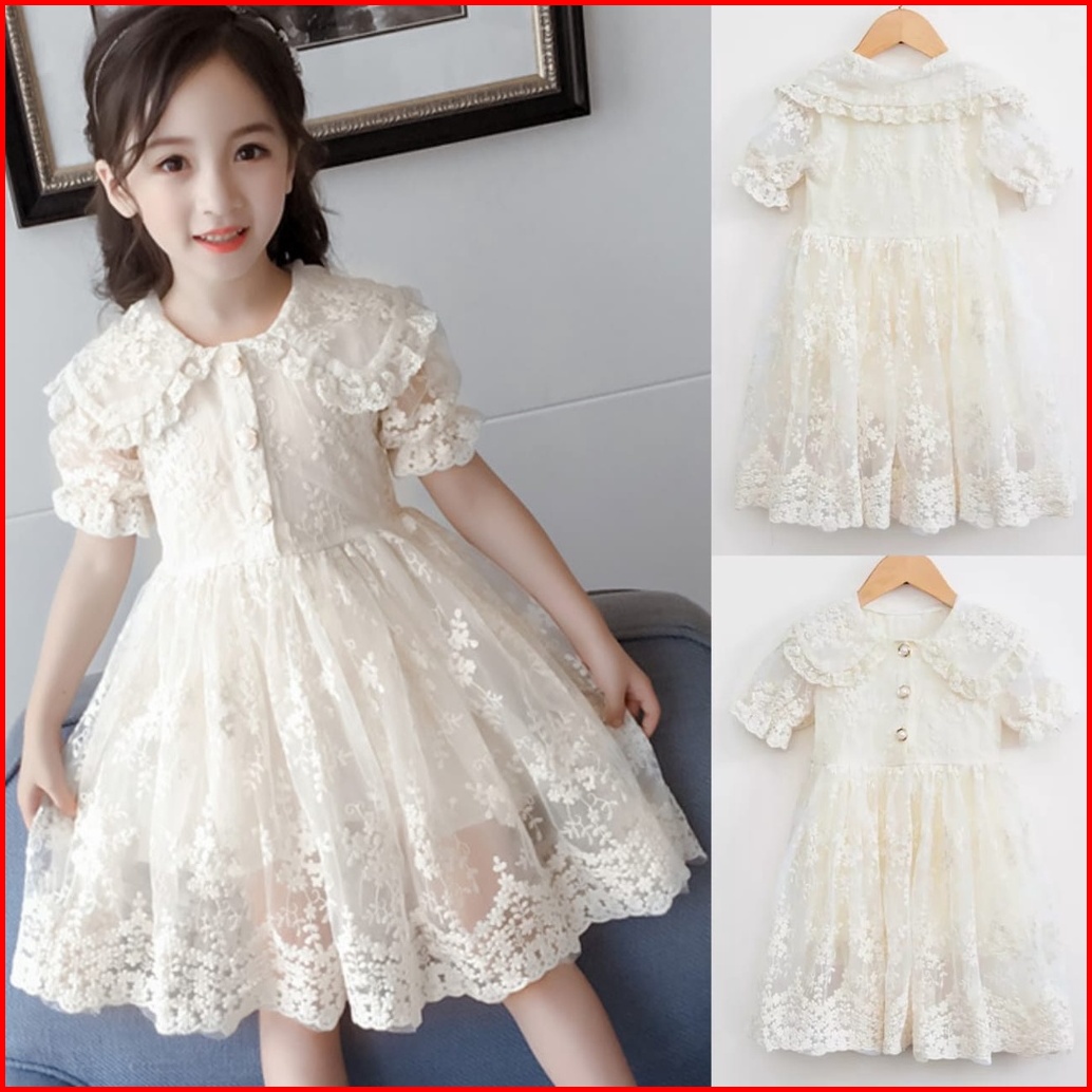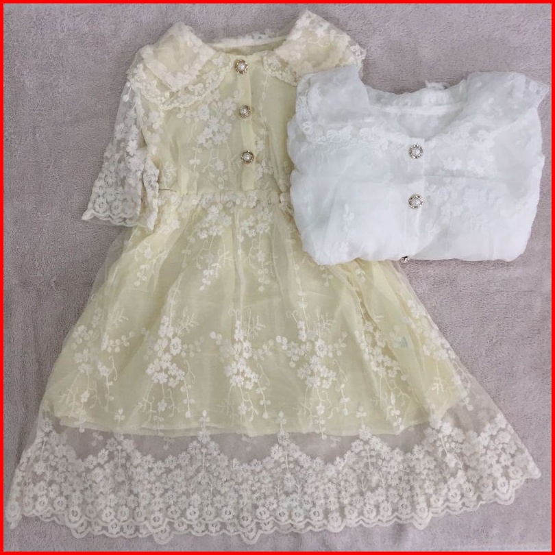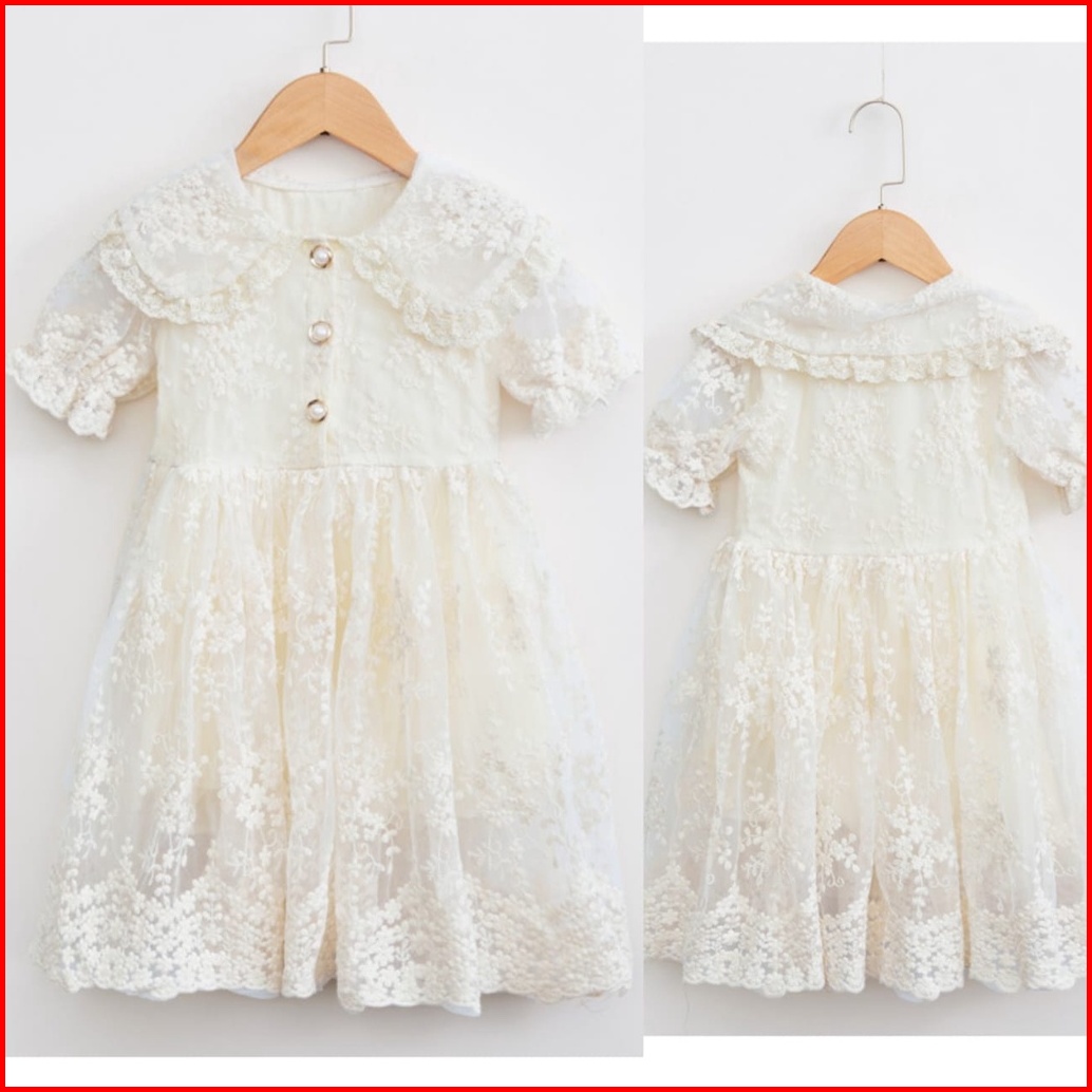 Dress Pesta Putih Brukat 1-10th Brokat Import Anak Gaun Baptis Renda