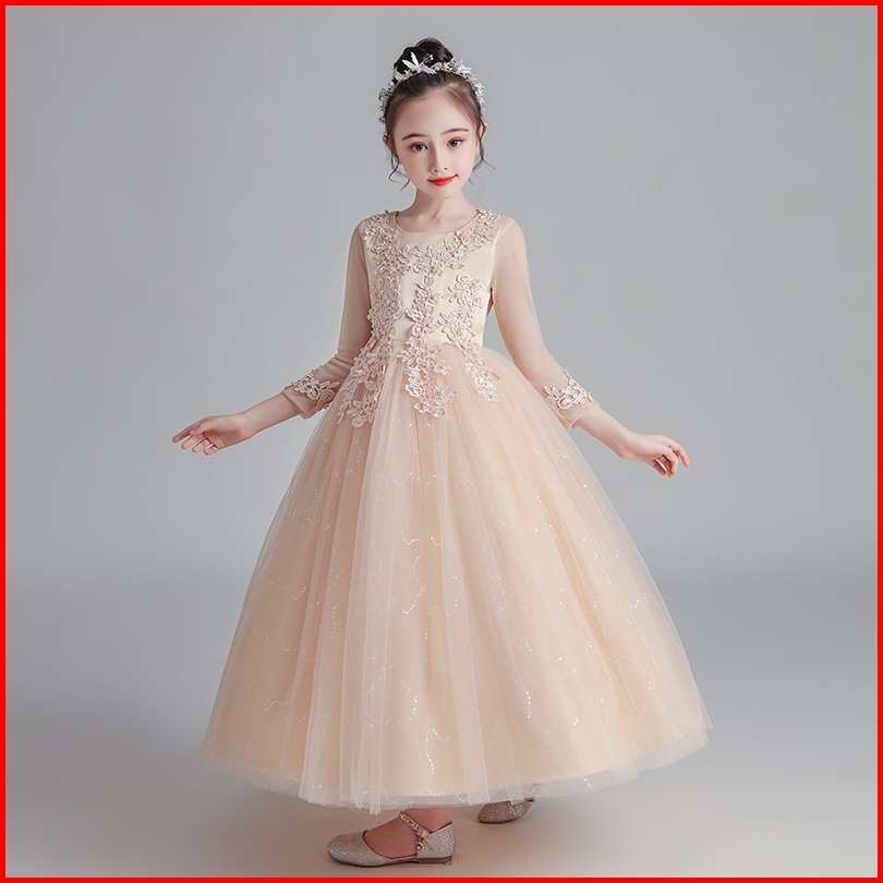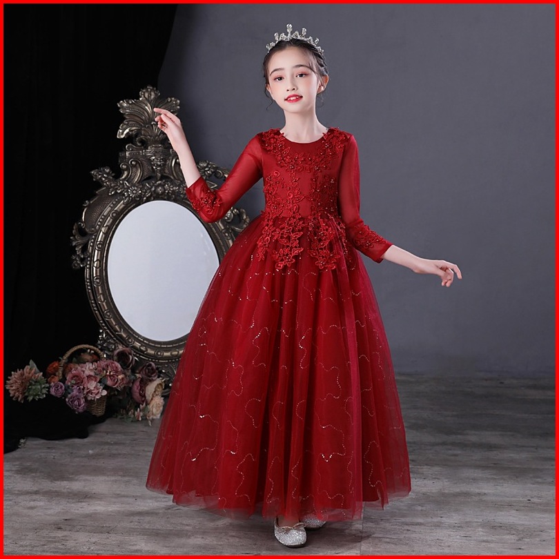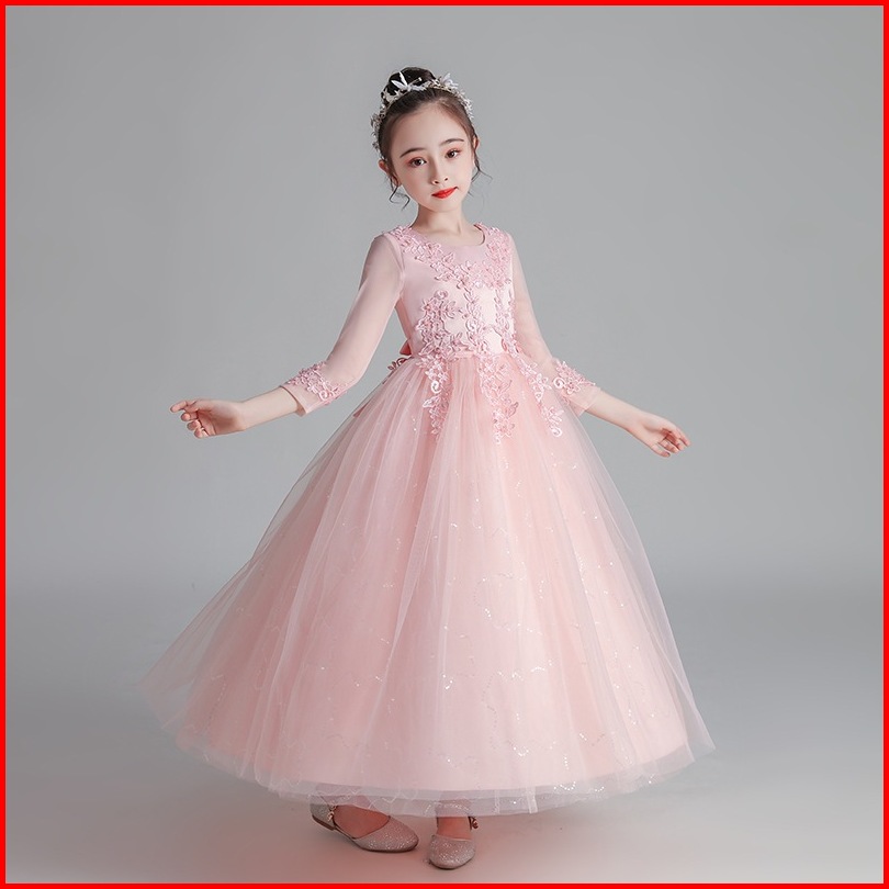 Dress Pesta Anak Perempuan Lengan Panjang 3 - 14 Tahun Princess Long Dress Tutu Import Korea Premium Gaun Ulang Tahun An