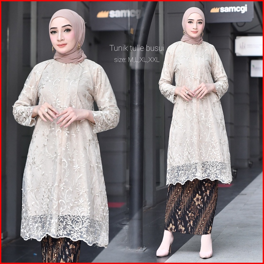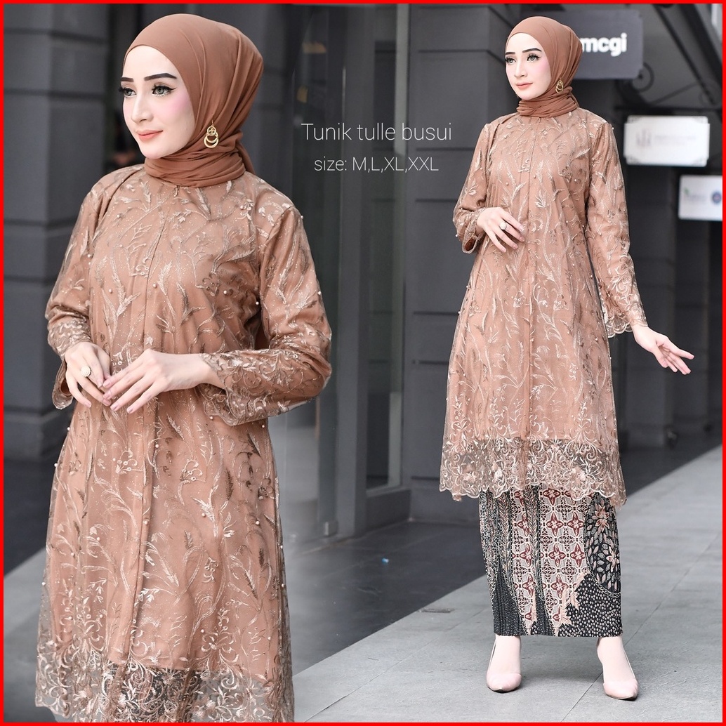 Kebaya Busui - Setelan Kebaya Modern - Set Tunik Tille Modern - Baju Kebaya Modern - Kebaya Wisuda - Atasan Kebaya Bruka
