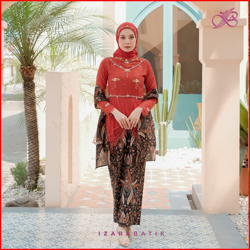 Izarabatik - Kebaya Shea Series Setelan Baju Kebaya Batik Modern Couple Wisuda Lamaran Kondangan Tunangan