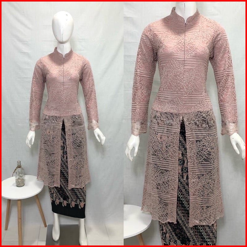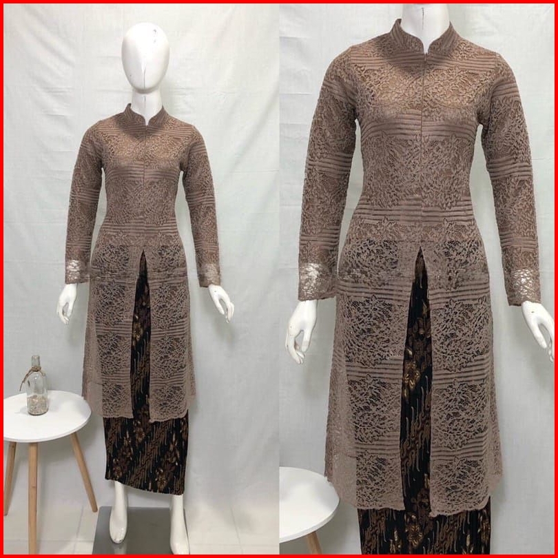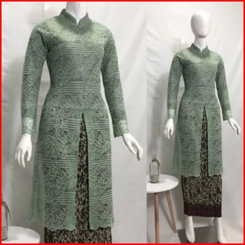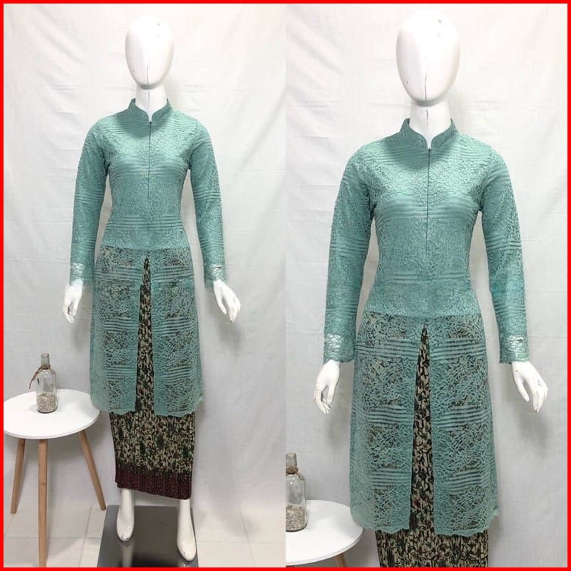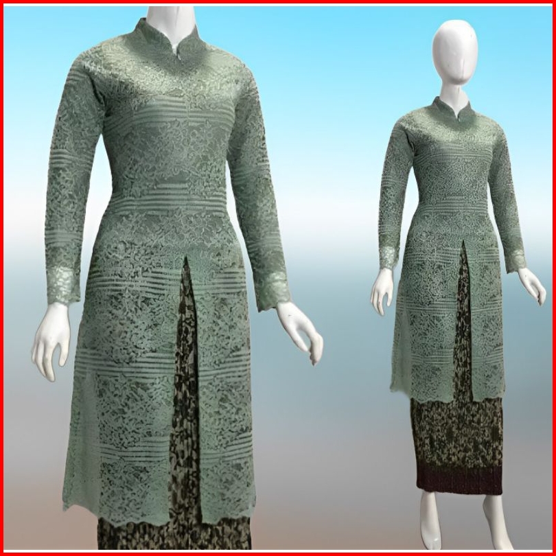 Set Baju Kebaya Jumbo Ld 130 Kebaya Kondangan Tunik Busui Atasan Kebaya Brukat Malika Modern Warna Sage