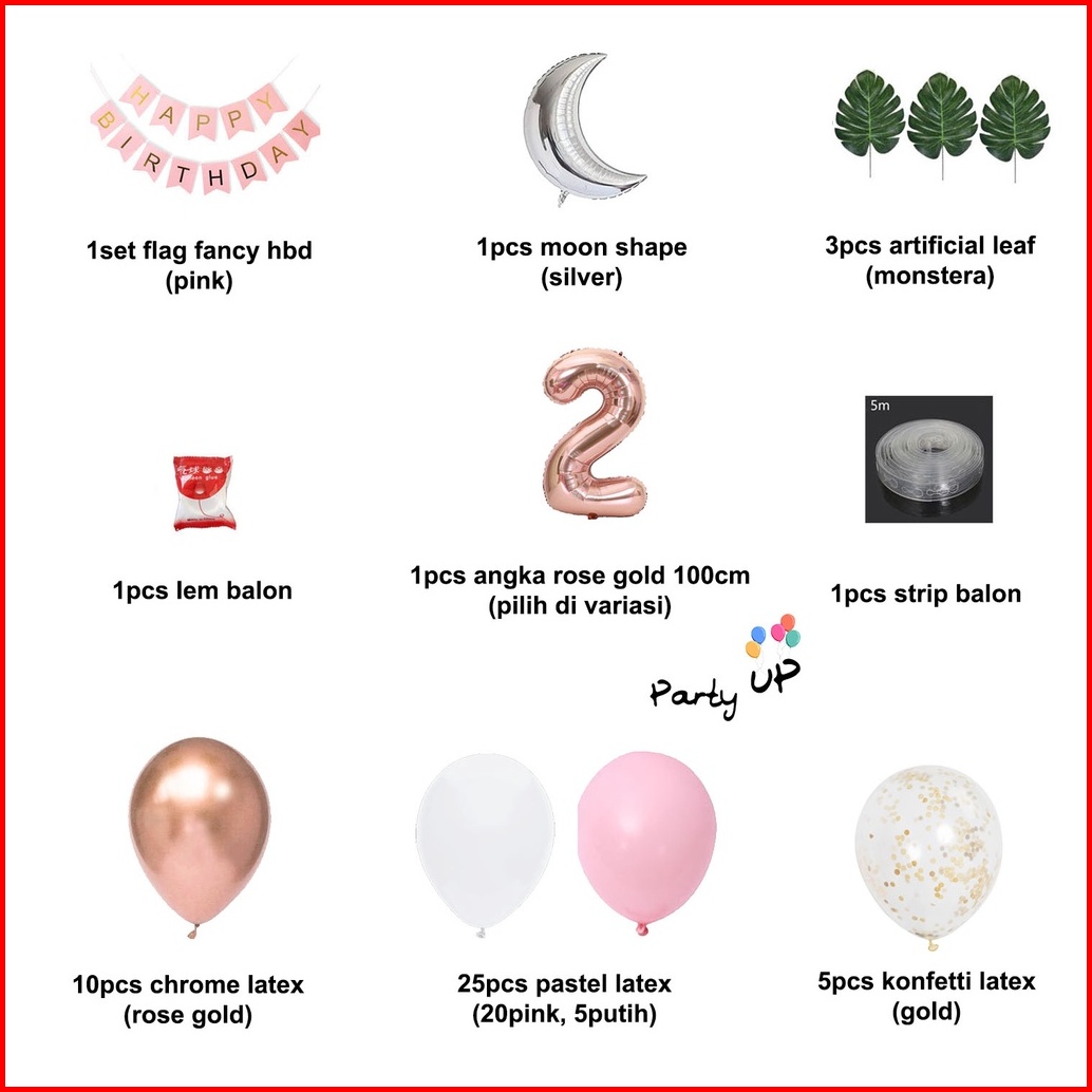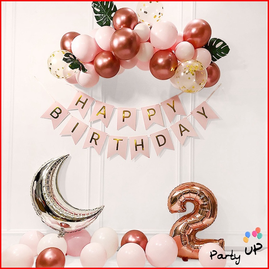 Arch Set Chain Balloon Rose Pink White Confetti Birthday Party