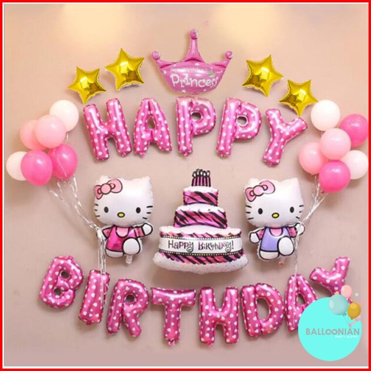 Hello Kitty Set Dekorasi Pink Balon Foil Hello Kitty Paket Dekorasi Ulang Tahun Anak Perempuan