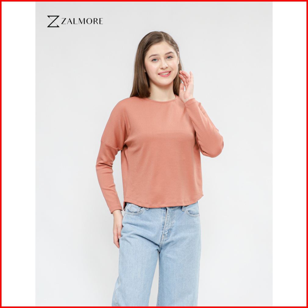 Zalmore Longsleeve Loose Tee Premium Knit-kaos Lengan Panjang Wanita