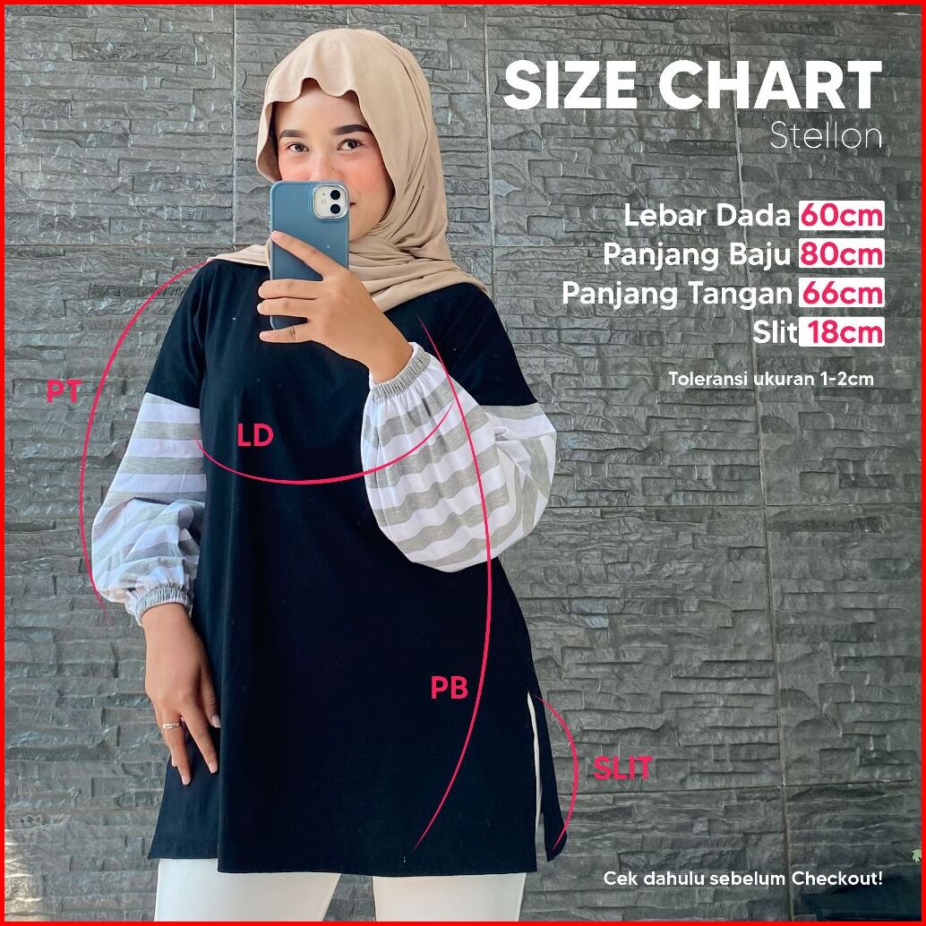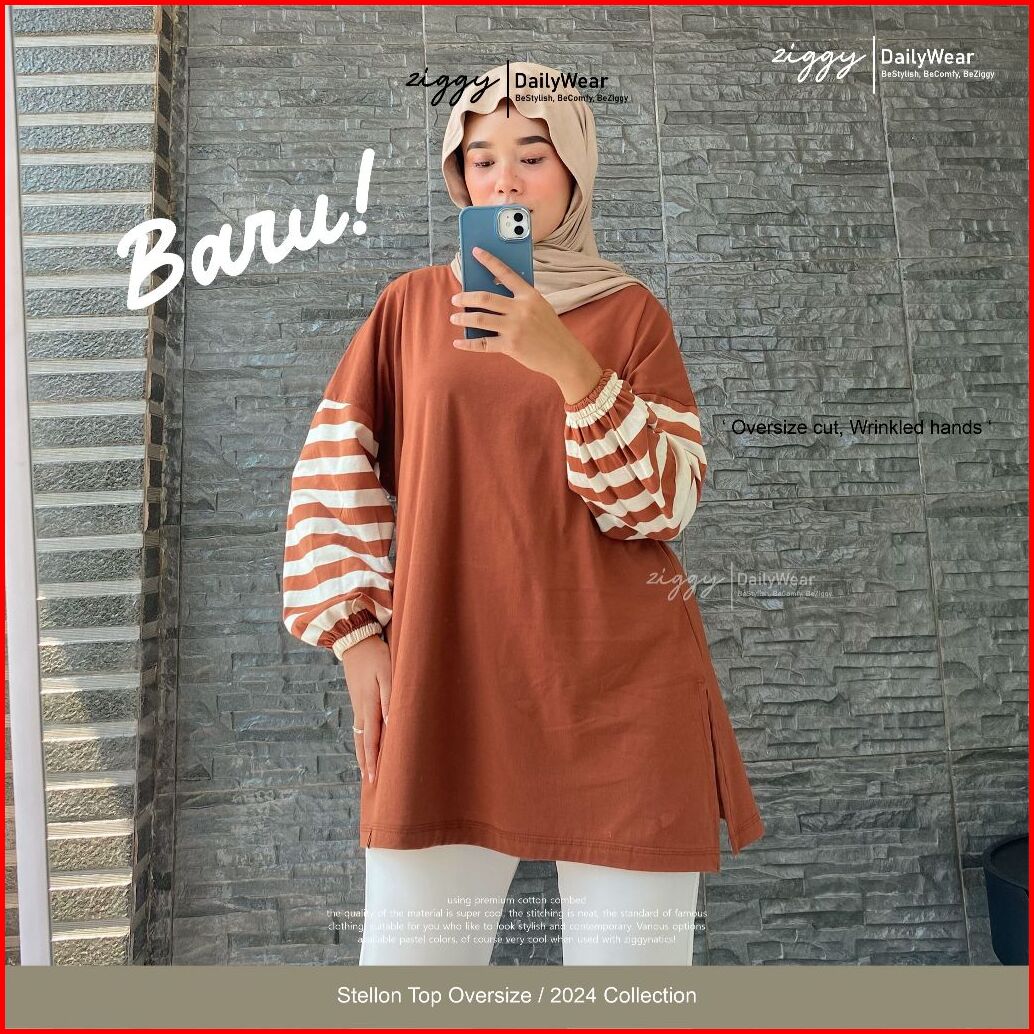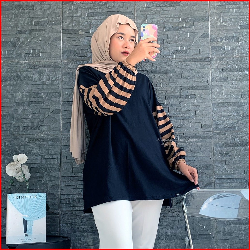 Ziggy Stella Balon Kaos Tshirt Katun Lengan Stripe Karet Salur Wanita By Ziggy