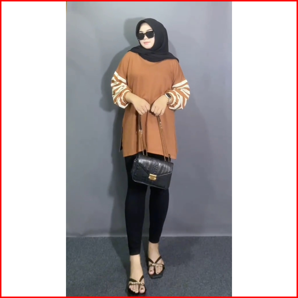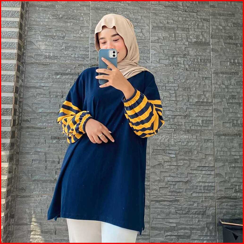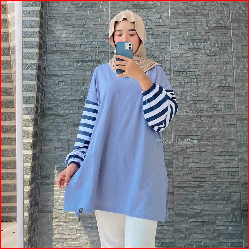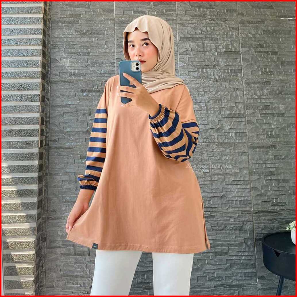Ziggy Stella Balon Kaos Tshirt Katun Lengan Stripe Karet Salur Wanita By Ziggy