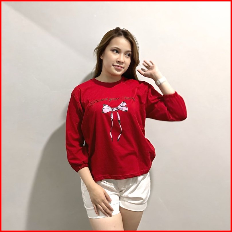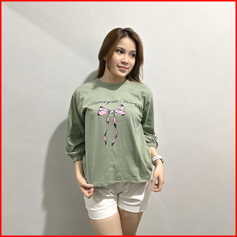 Vichia Shirt Lengan Balon Pita Choquette Protect Your Heart