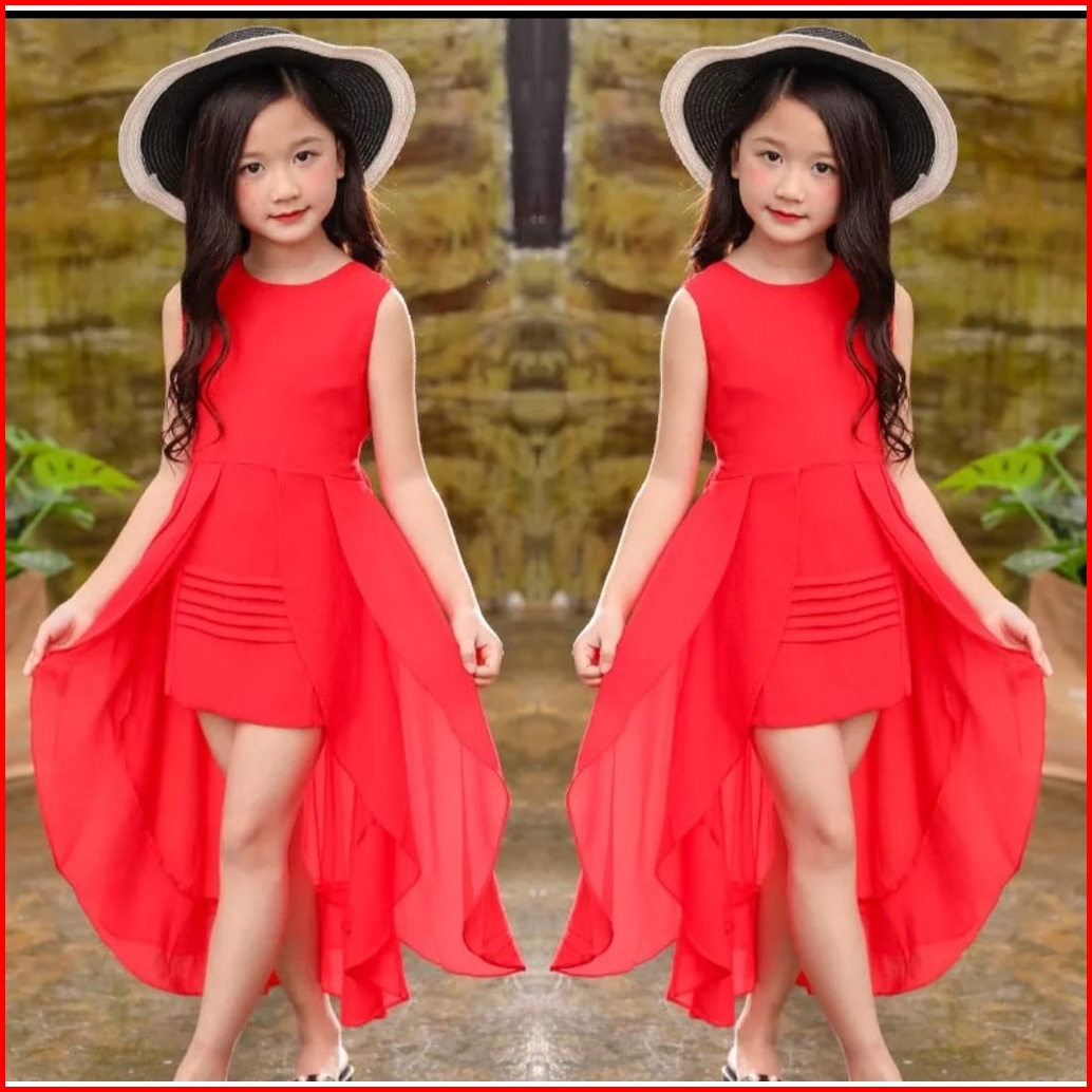 Inv - Dress Korea Kids Penguin Red Terbaru Umur 8-12 Tahun Korea Bangkok Fashion Kids