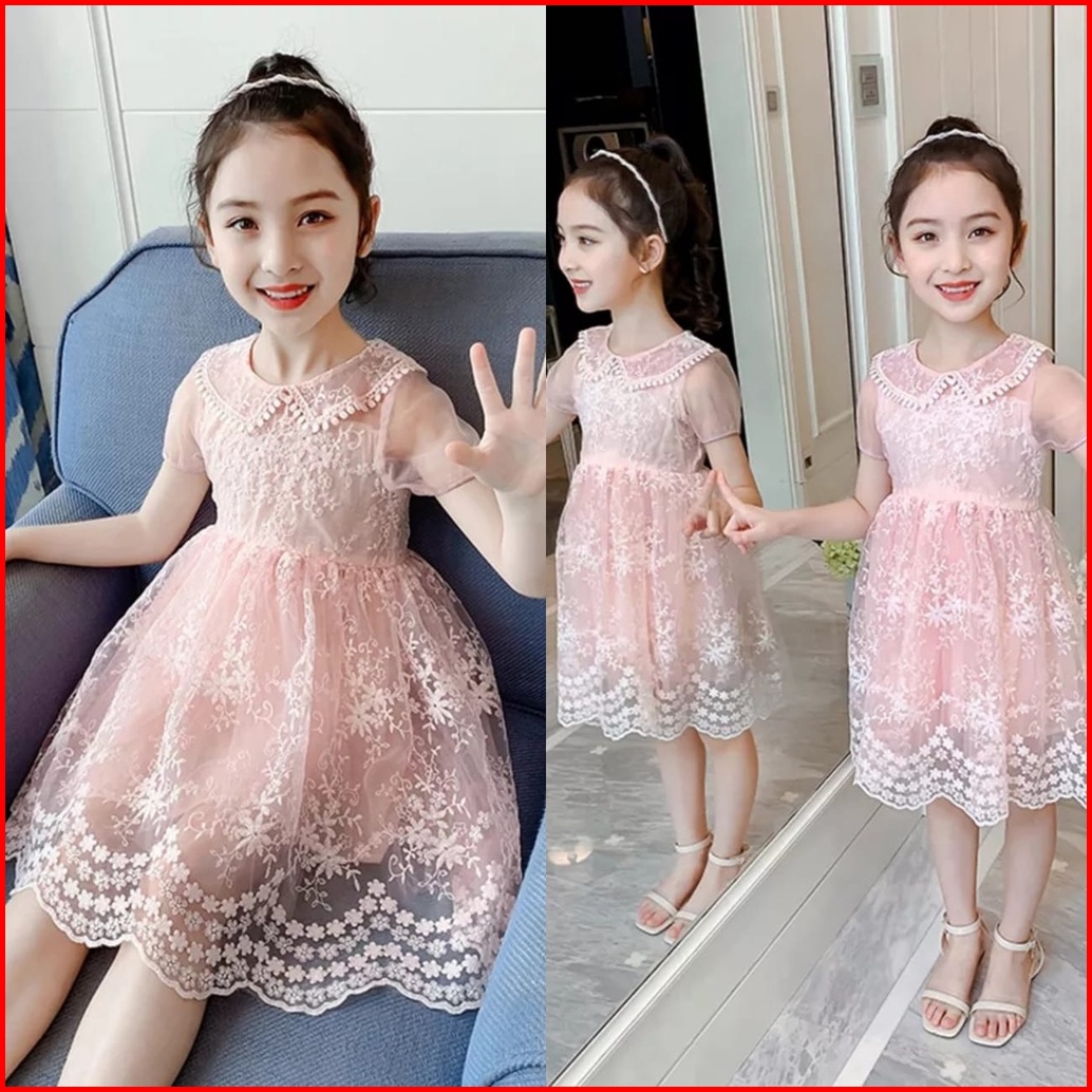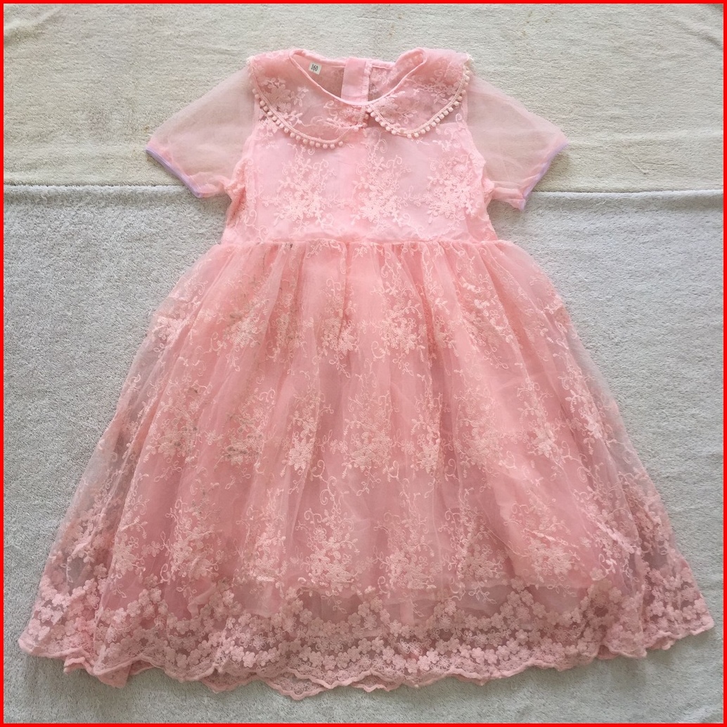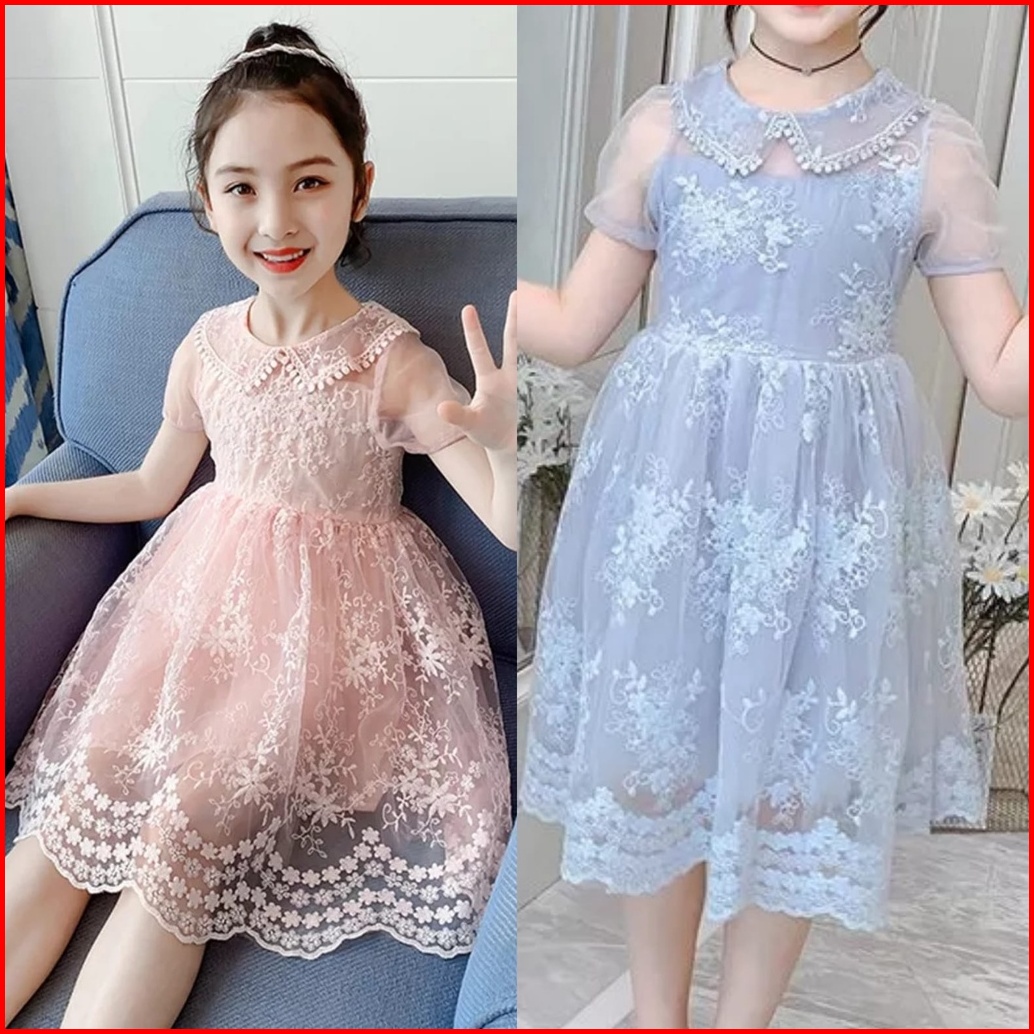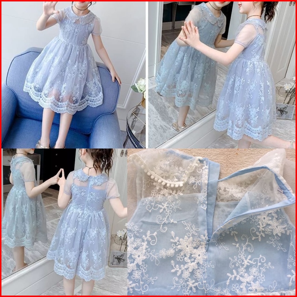 Dress Brukat Import Oren Biru Peach 7-10th Gaun Pesta Brocade Renda Brokat Tanggung Teens