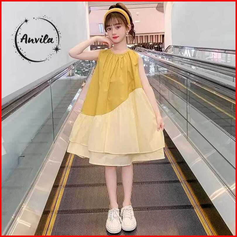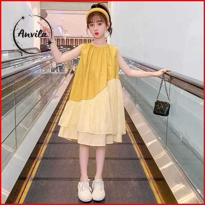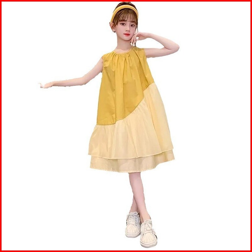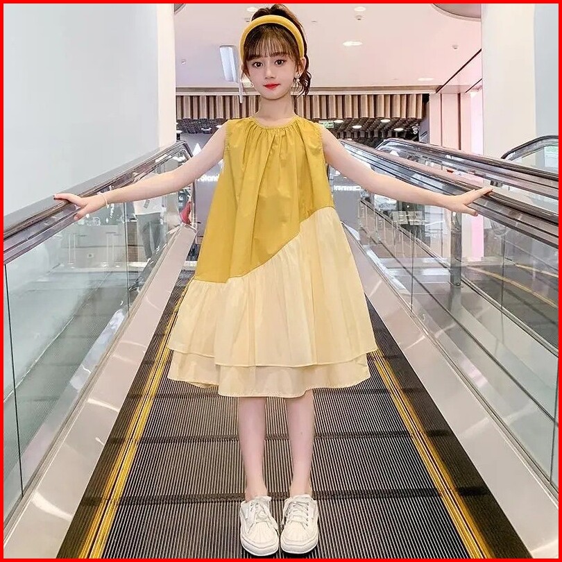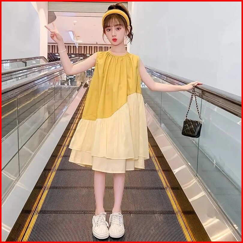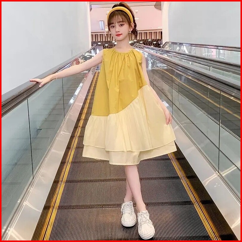 Dress Anak Perempuan Import Size Tanggung Rample Polos Simple Tanpa Lengan Kekinian