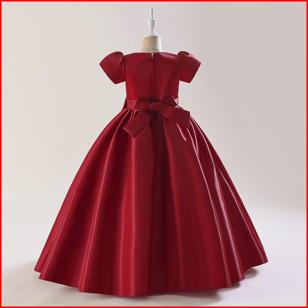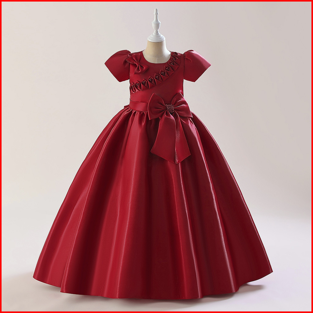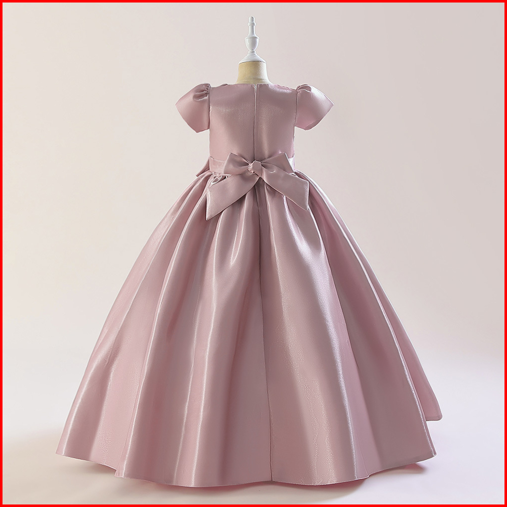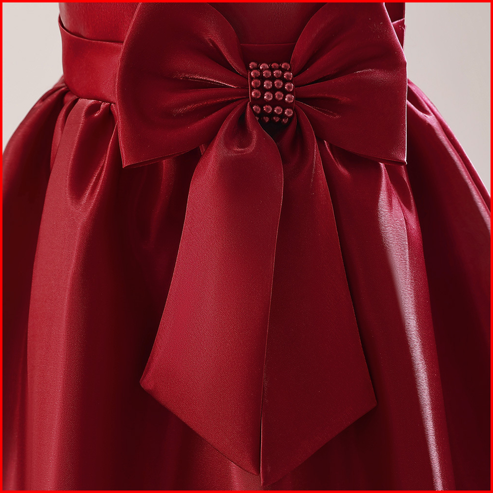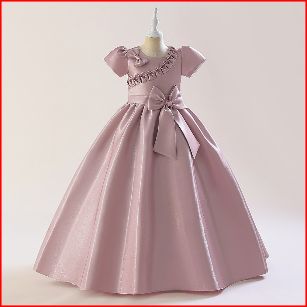 3-10thn New Birthday Party Dress Anak Perempuan Bahan Satin Hijau Bijak Baju Pesta Anak Perempuan