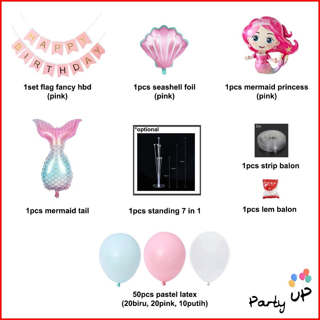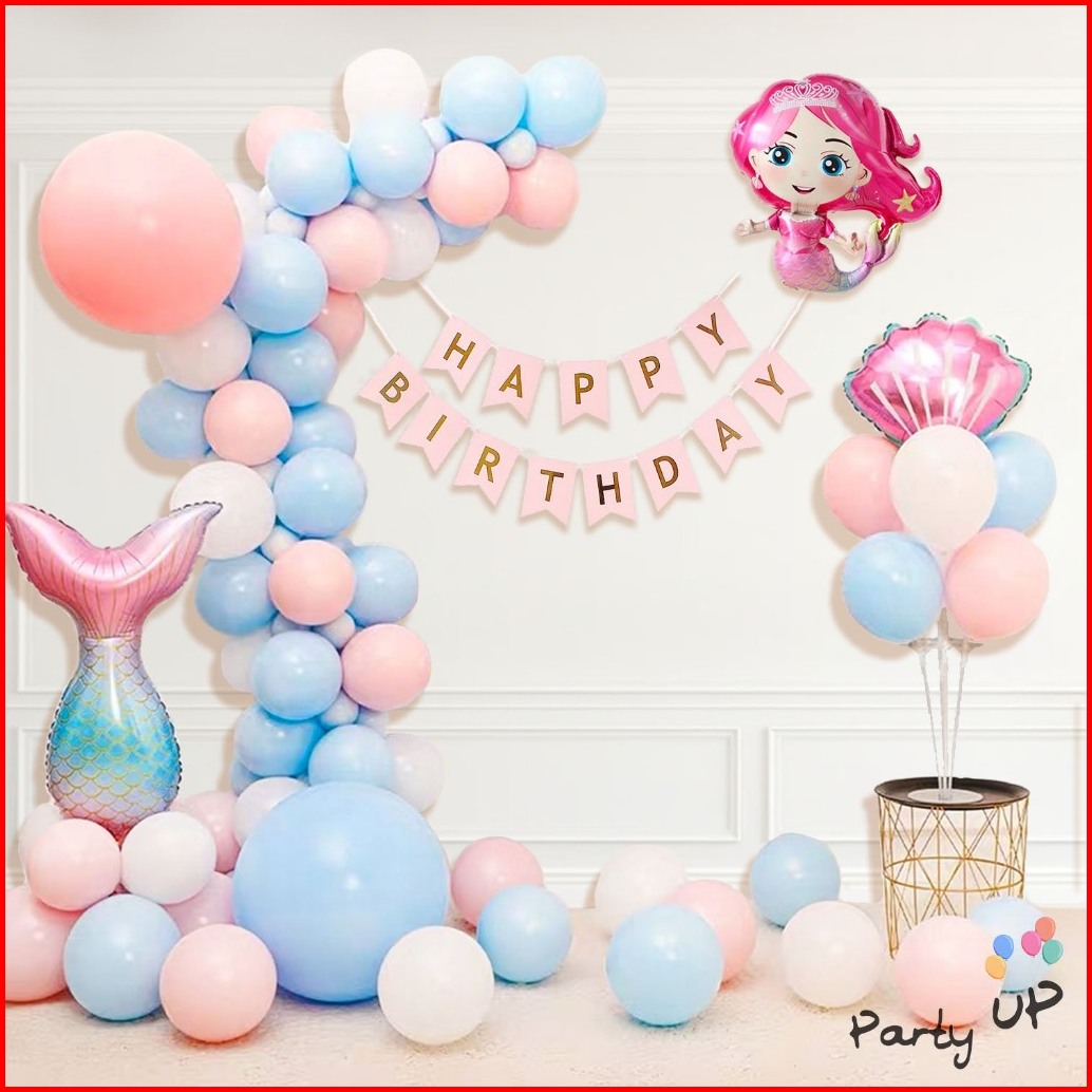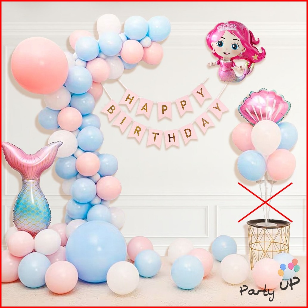 Paket Arch Paket Flag Dekorasi Balon Rantai Mermaid Putri Duyung Pink Biru