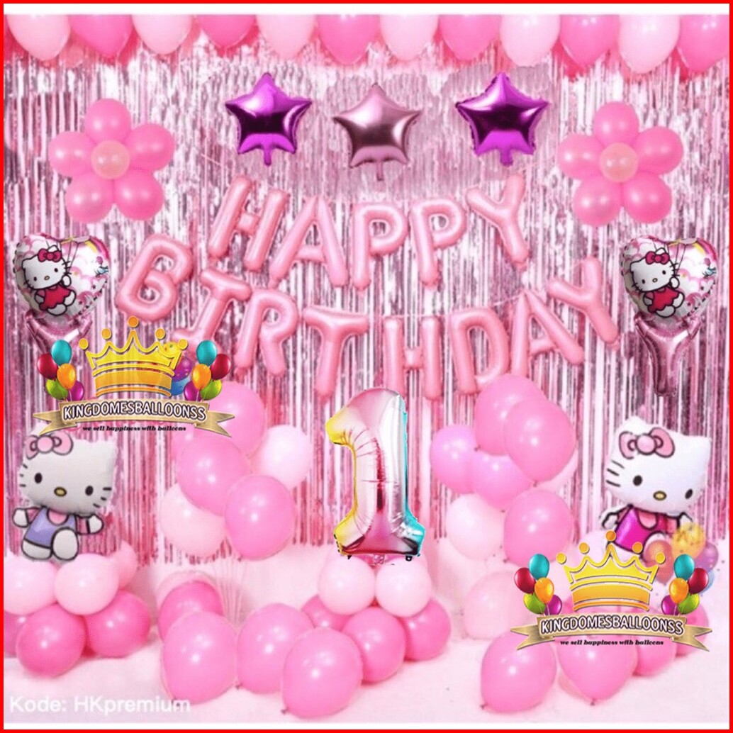 Set Paket Balon Set Karakter Hello Kitty Happy Birthday Ulang Tahun Anak