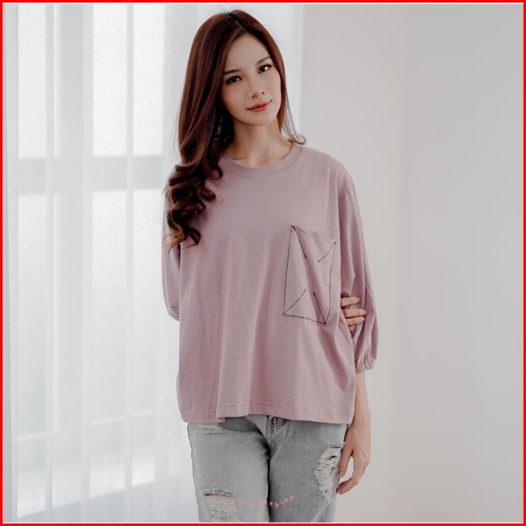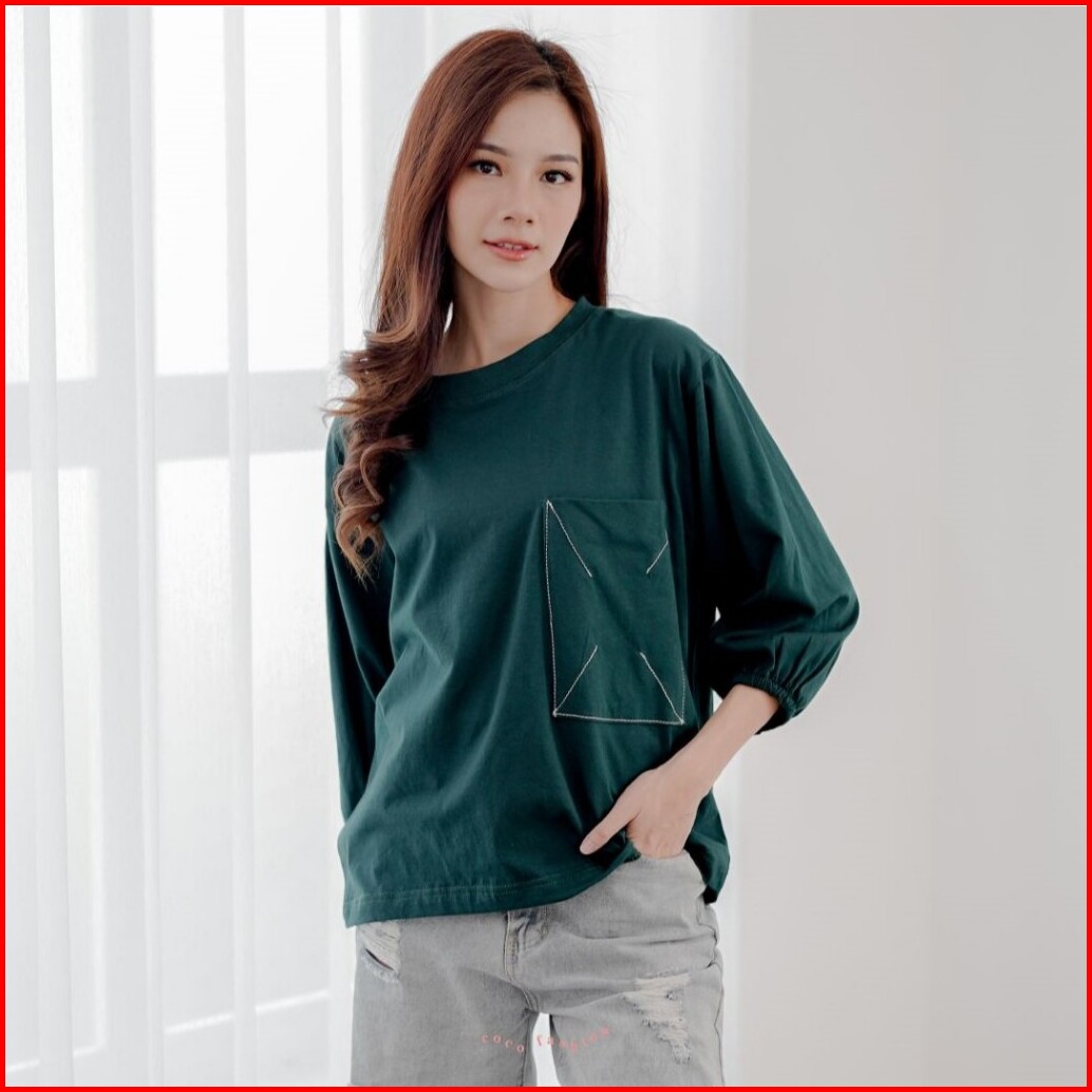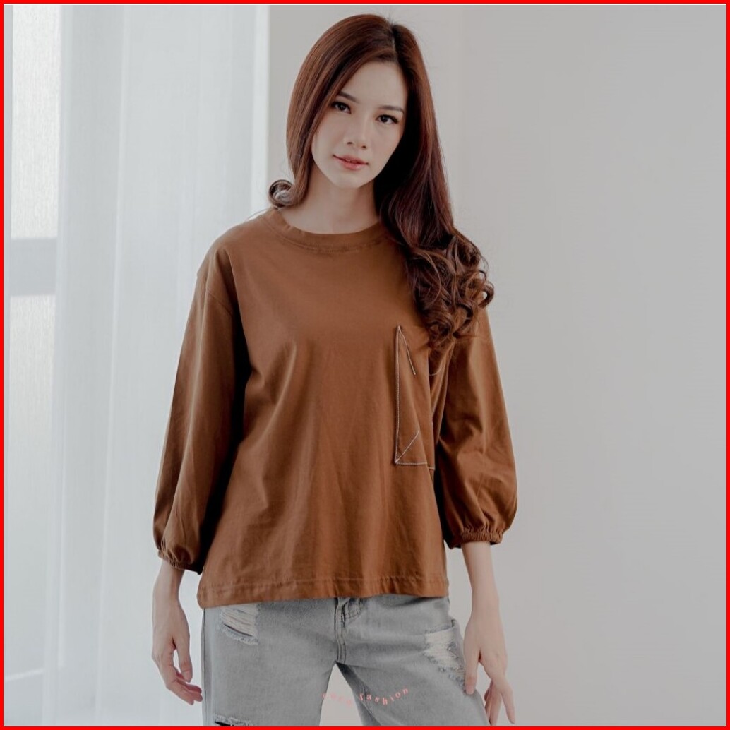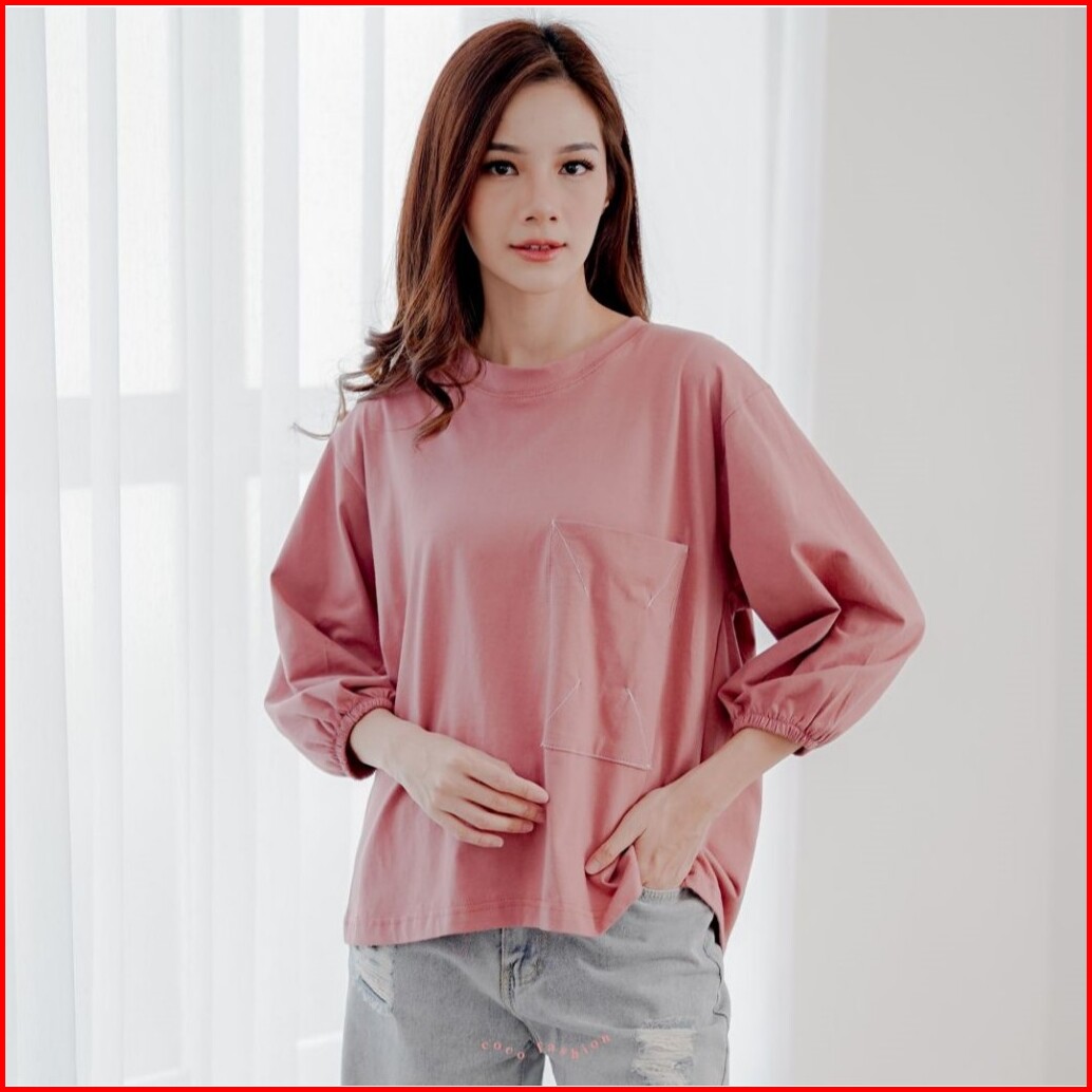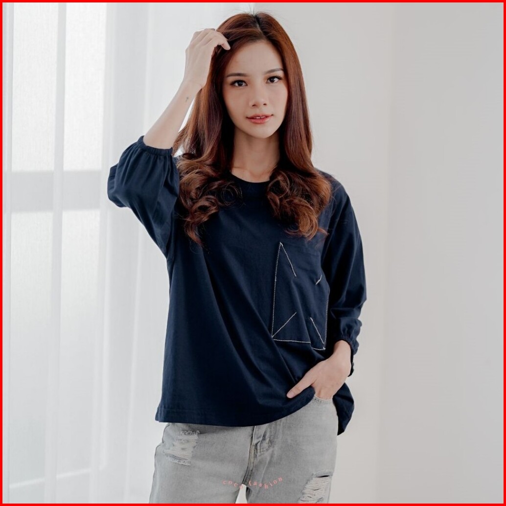 Atasan Wanita Kaos Lengan Panjang Hijab Alea Oversize Kantong Premium Korean Style