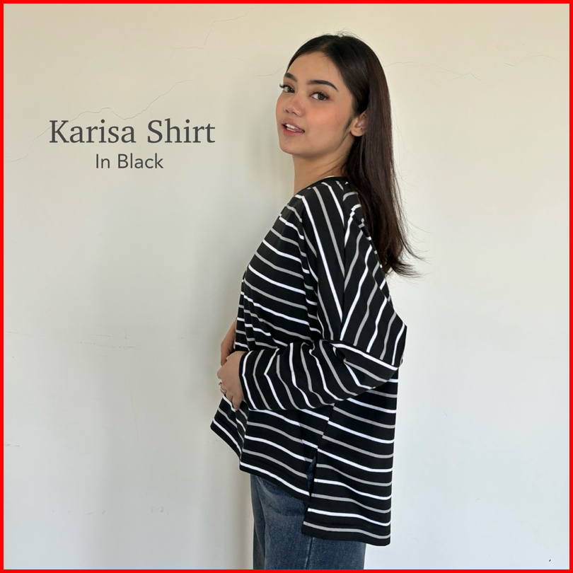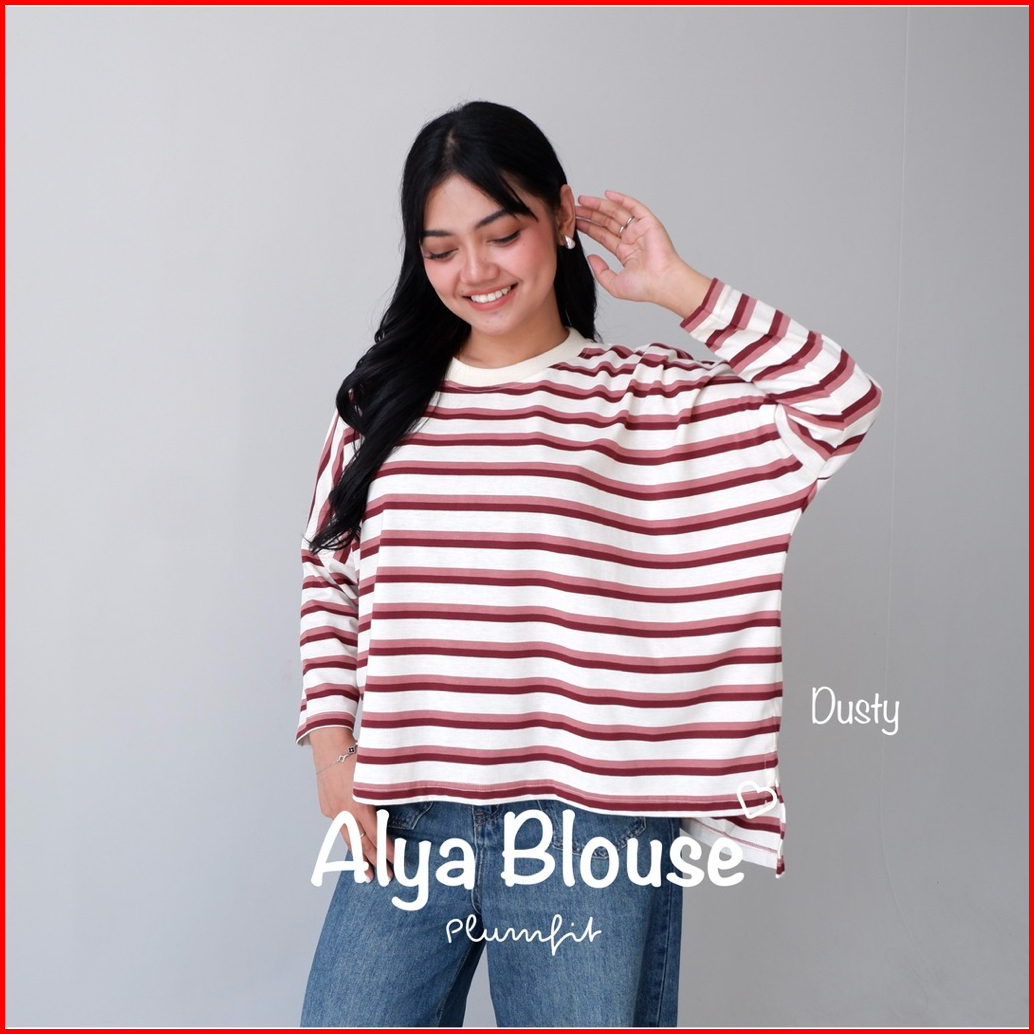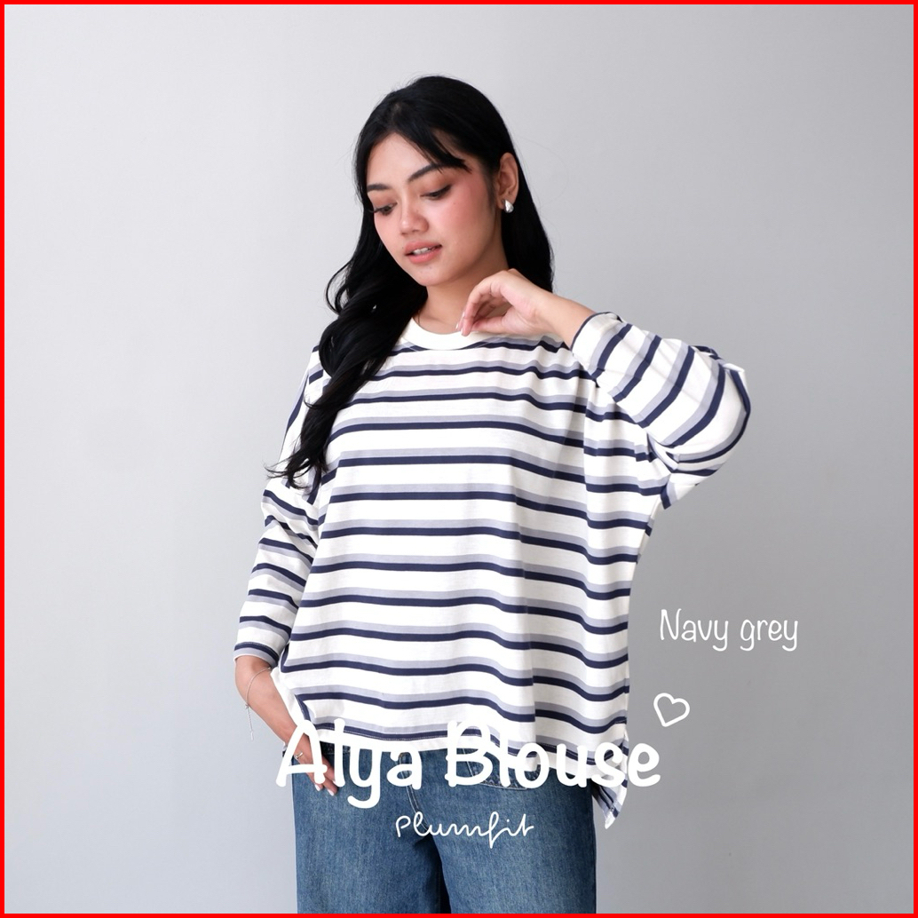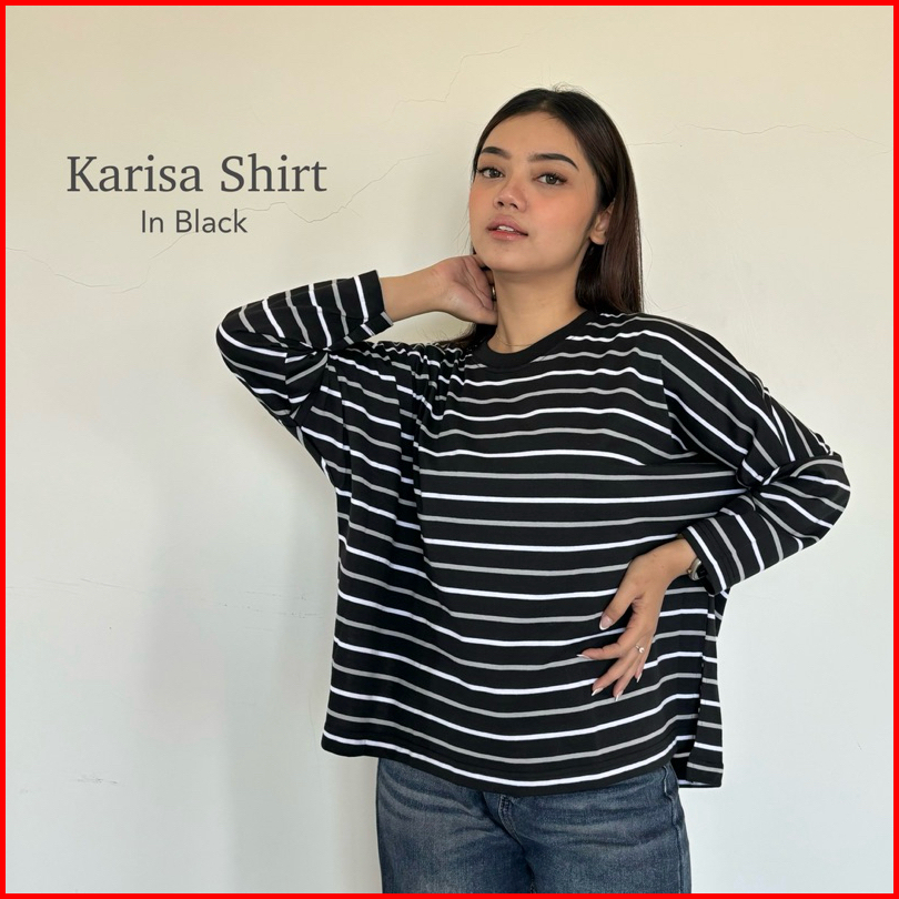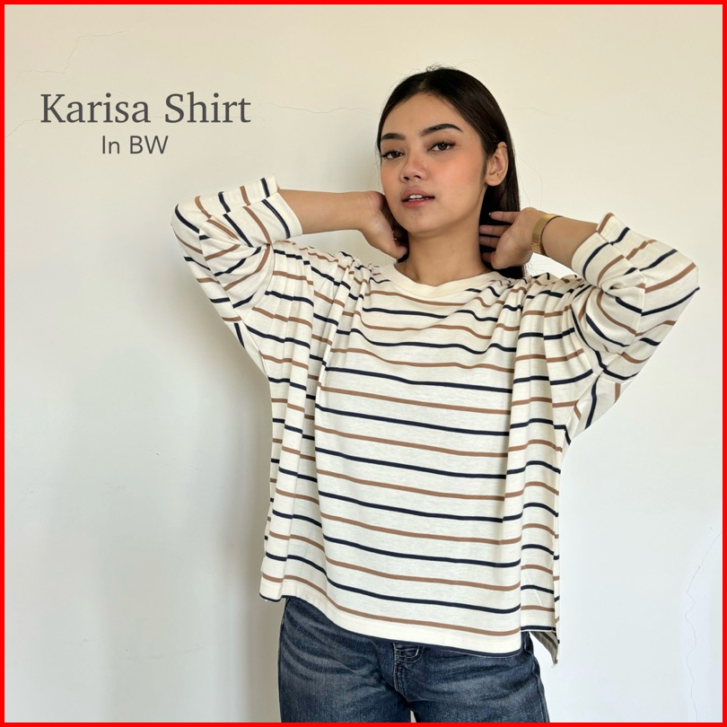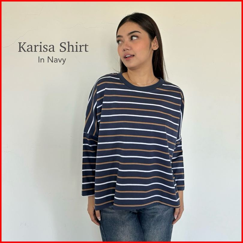 Plumfit Kaos Wanita Oversize Motif Garis Matterial Cotton Combed Karisa Shirt