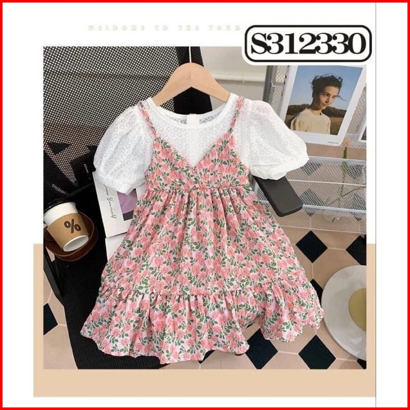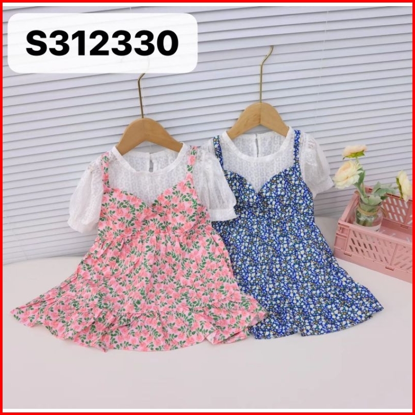 Dress Anak Perempuan Dress Import Dress Kasual Anak Flower Lengan Pendek