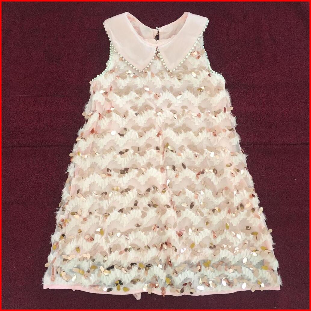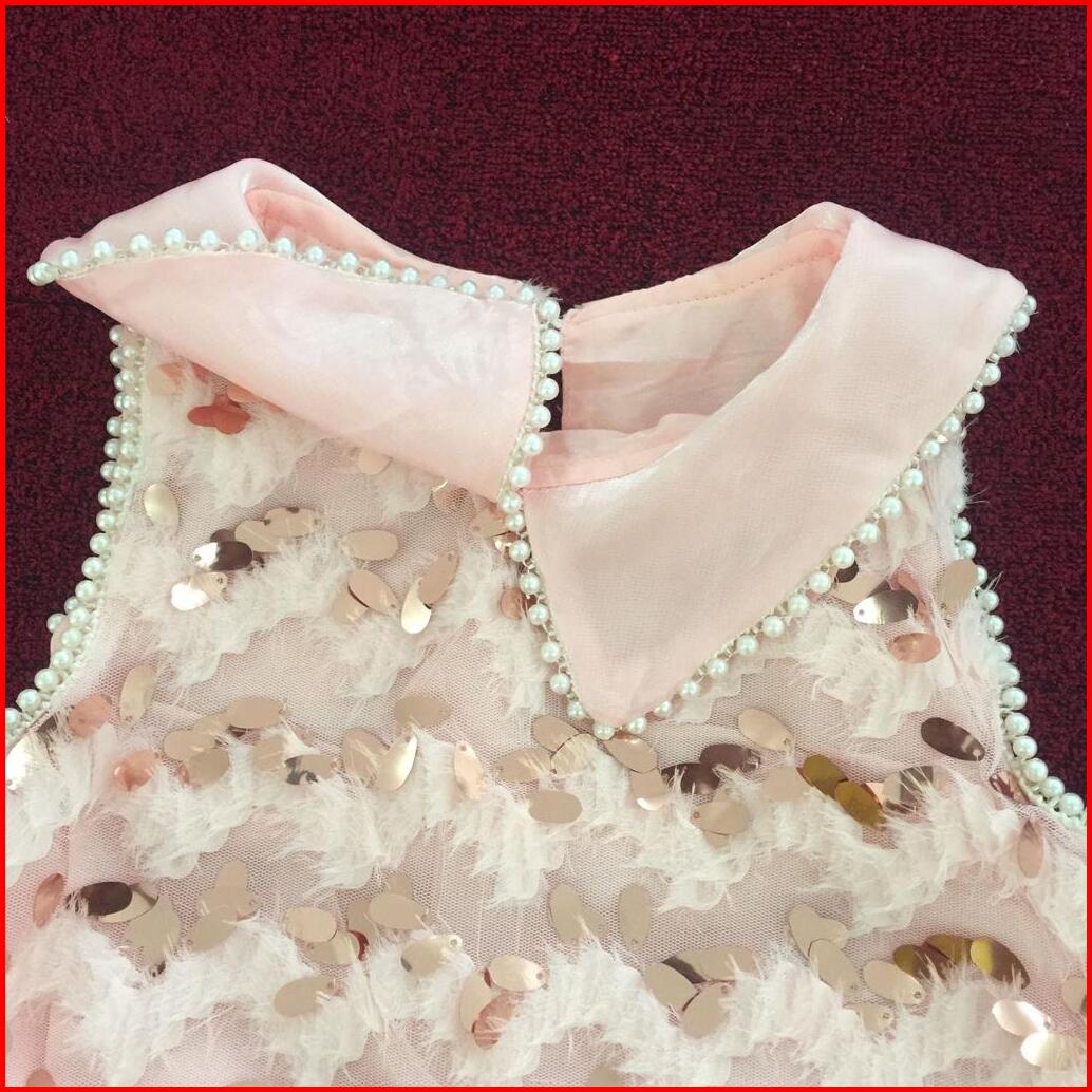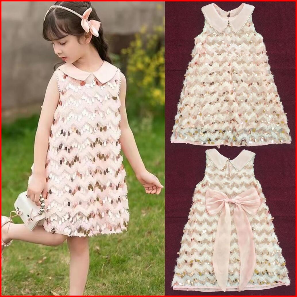 2-8th Gaun Anak Salem Pesta Mutiara Payet Mewah Tanpa Lengan Dress 3d Sequin Impor Peach Pink