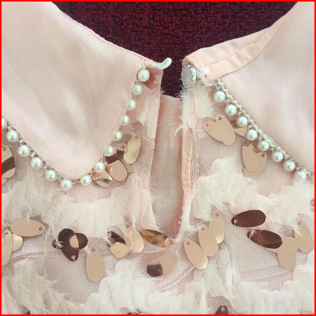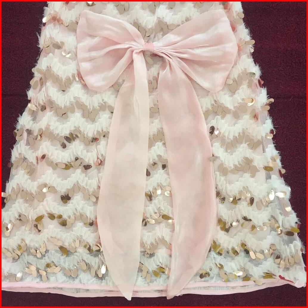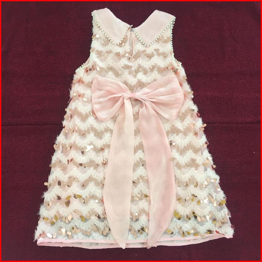 2-8th Gaun Anak Salem Pesta Mutiara Payet Mewah Tanpa Lengan Dress 3d Sequin Impor Peach Pink