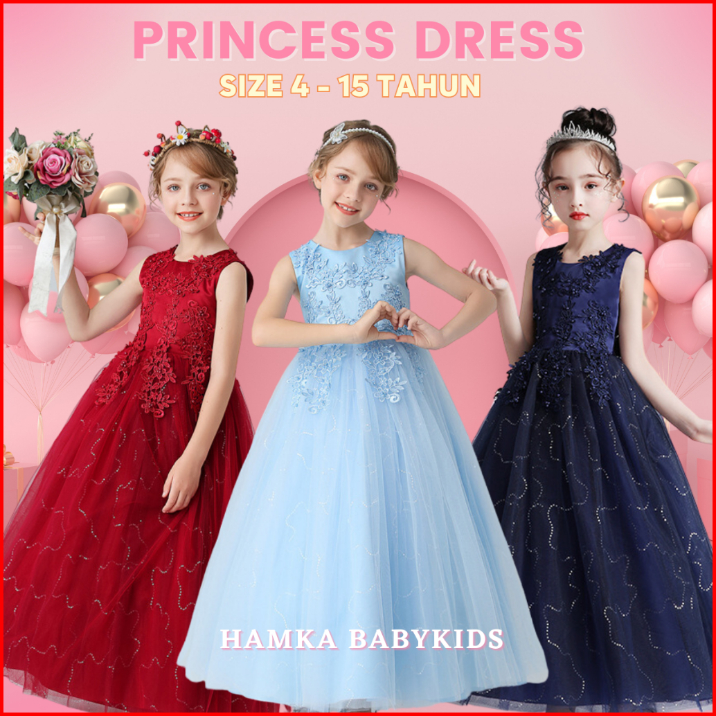 Dress Pesta Anak Perempuan 4 - 15 Tahun Princess Long Dress Tutu Import Korea Premium Gaun Ulang Tahun Anak Tanggung