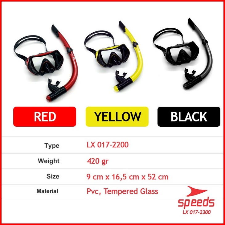 Speeds Kacamata Renang Snorkeling Pvc Latihan Selam Snorkel Diving 017-2300