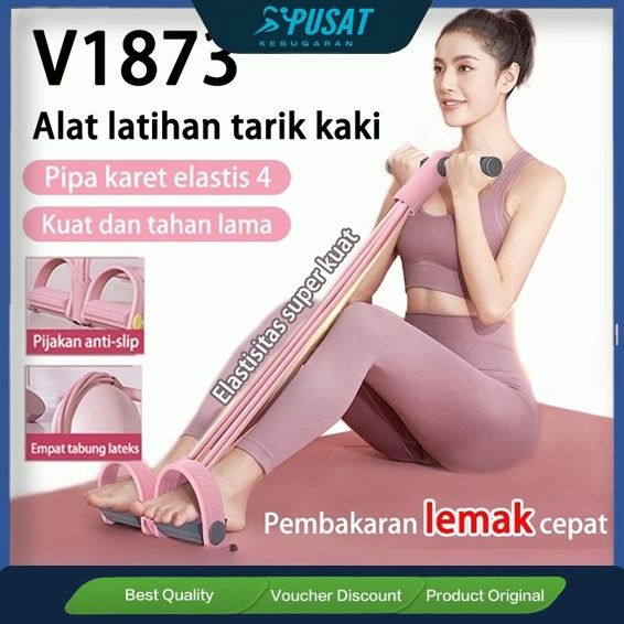 Alat latihan tarik kaki/Pedal Yoga Elastis 4 Tabung/Pengecil Perut Dan Pembakar Lemak/Peralatan latihan