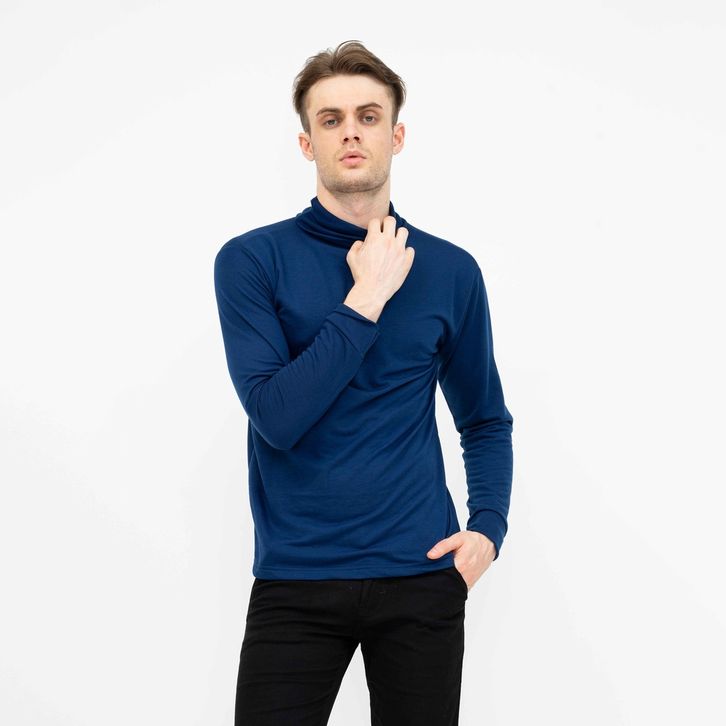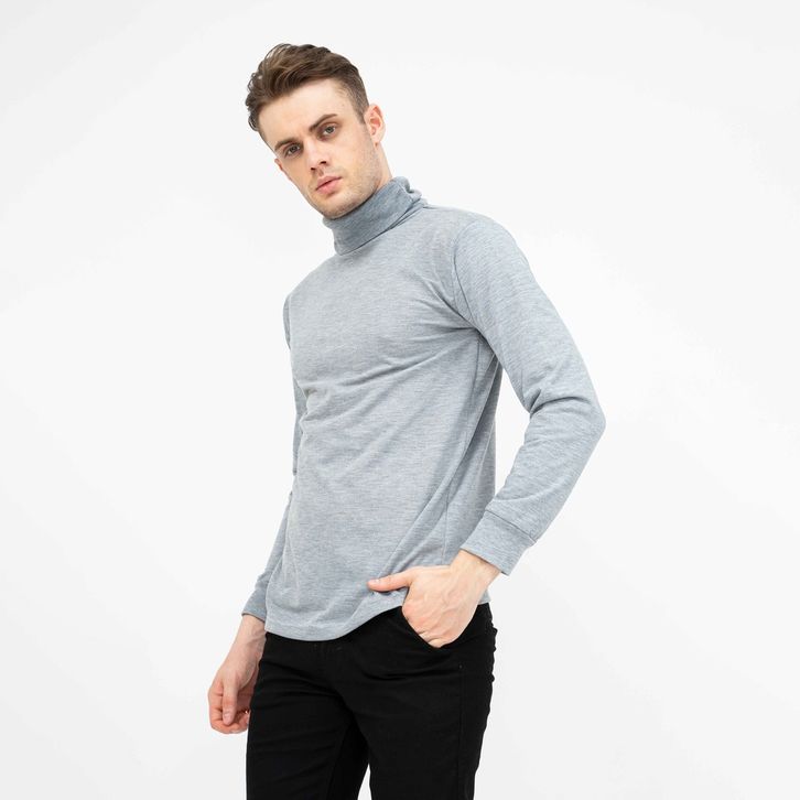 Turtle Neck Pria Lengan panjang kaos pria kerah tinggi slim fit