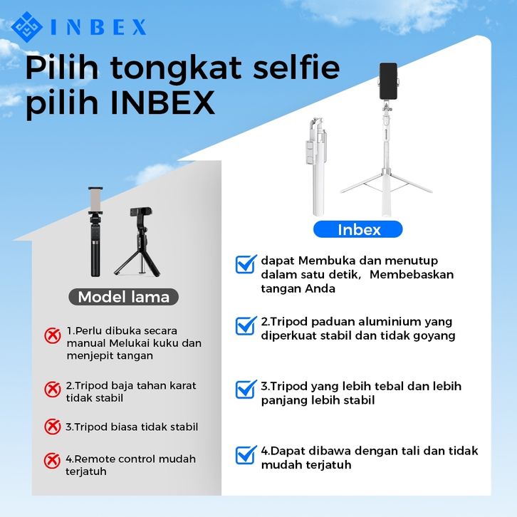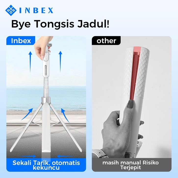Tongsis Tripod Bluetooth Quadpod 1.8m Konten Kreator Portable Selfie Stick