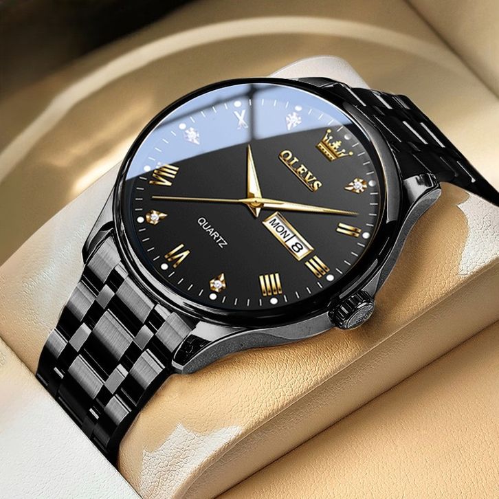JAM TANGAN PRIA ORIGINAL / ANTI AIR / TAHAN LED LUXURY ANALOG KEREN / STAINLESS STEEL MEN WATCH HITAM PUTIH