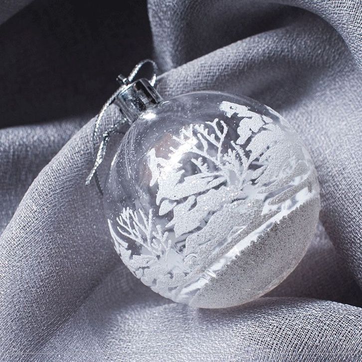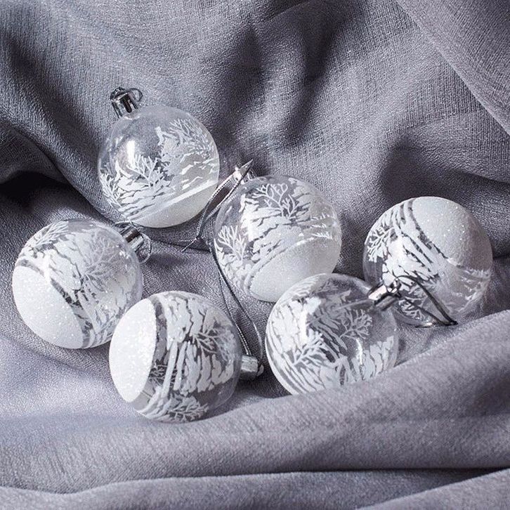 Hiasan Bola Transparan Putih Motif Natal 6cm isi 6 Aksesoris Dekorasi Ornament Gantungan Pohon Natal