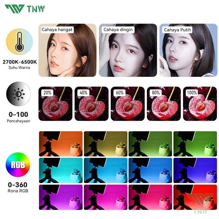Lampu LED Video Lampu Studio Led Lighting Portable Mini Lampu Fotografi RGB Led Video Light Untuk Camera TNW D24 RGB