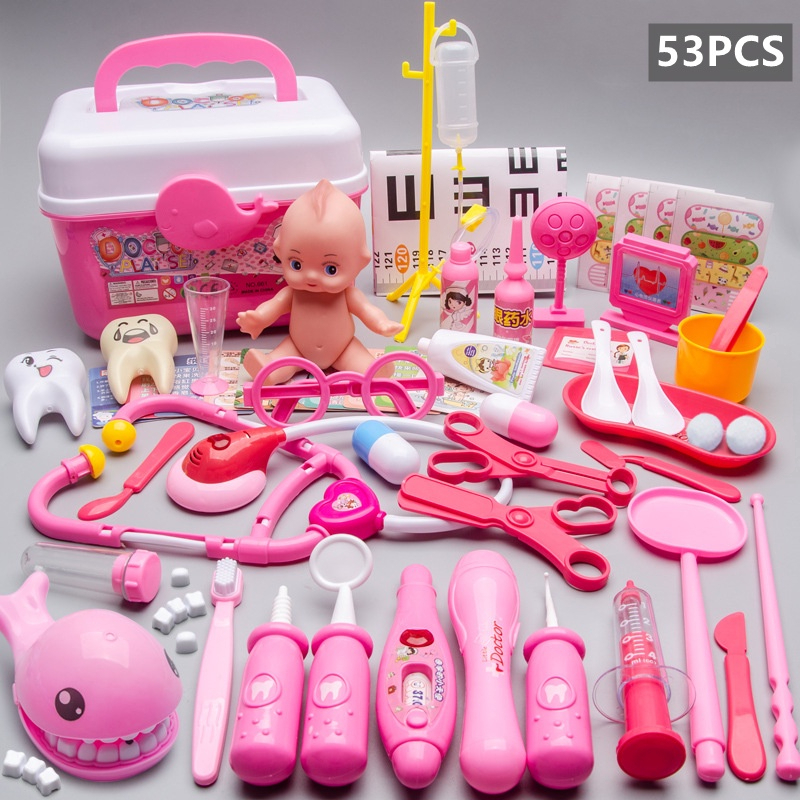 Mainan Dokter Dokteran Set Anak Mainan Berpura Mainan Edukasi Anak Mainan Medis Kit 39/53Pcs