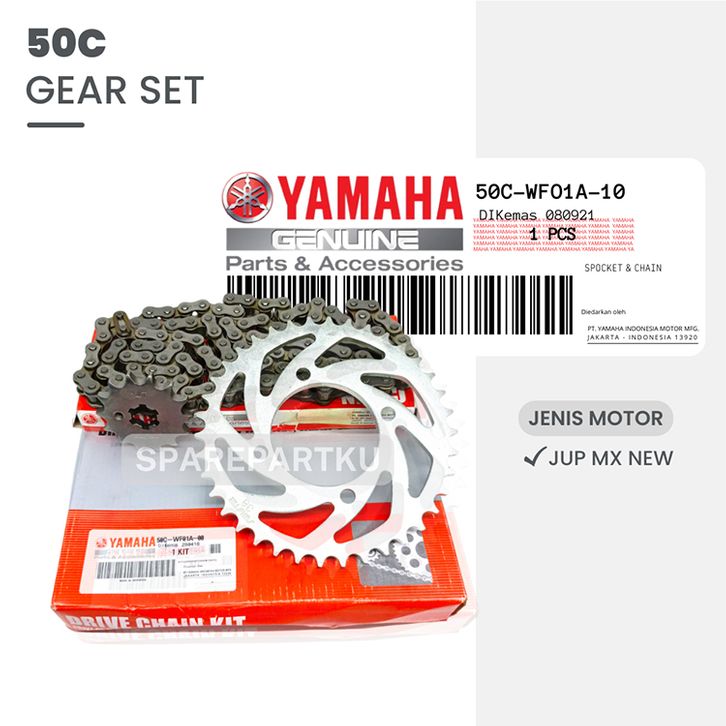 PAKET GIR DEPAN BELAKANG + RANTAI RODA KIT / 50C GEAR SET MOTOR JUPITER MX NEW / GEARSET / GER / DRIVE CHAIN KIT