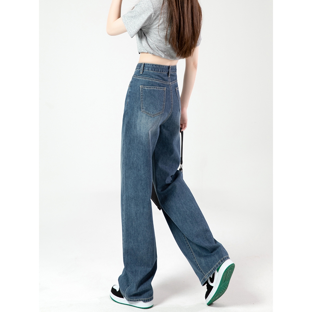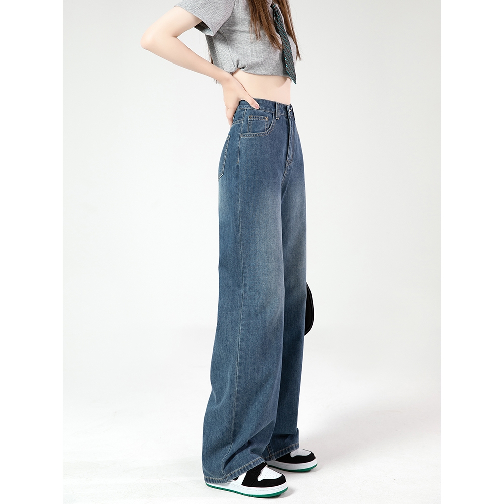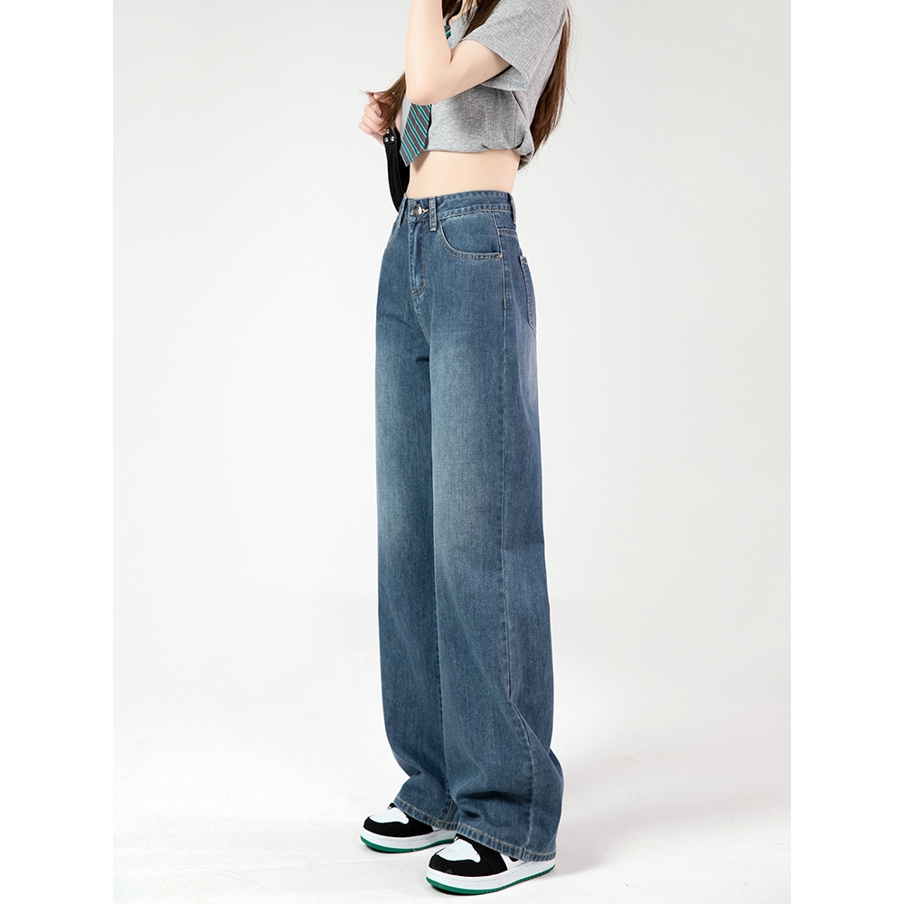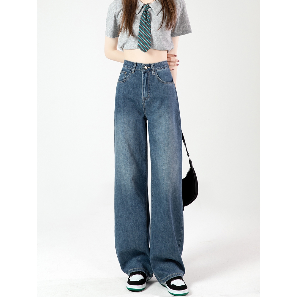 Biru retro Highwaist Loose Kasual Jeans Wanita Premium