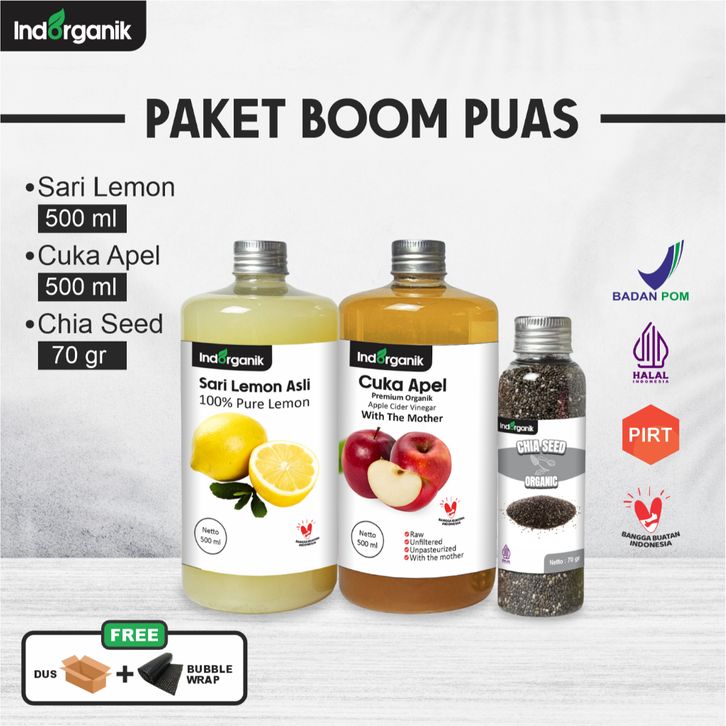 Pelangsing Tubuh Permanen Perut Buncit Paket Diet Detox 3in1 Sari Lemon Cuka Apel 500ml Chia Seed 70gr