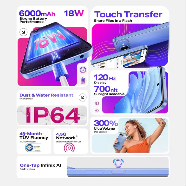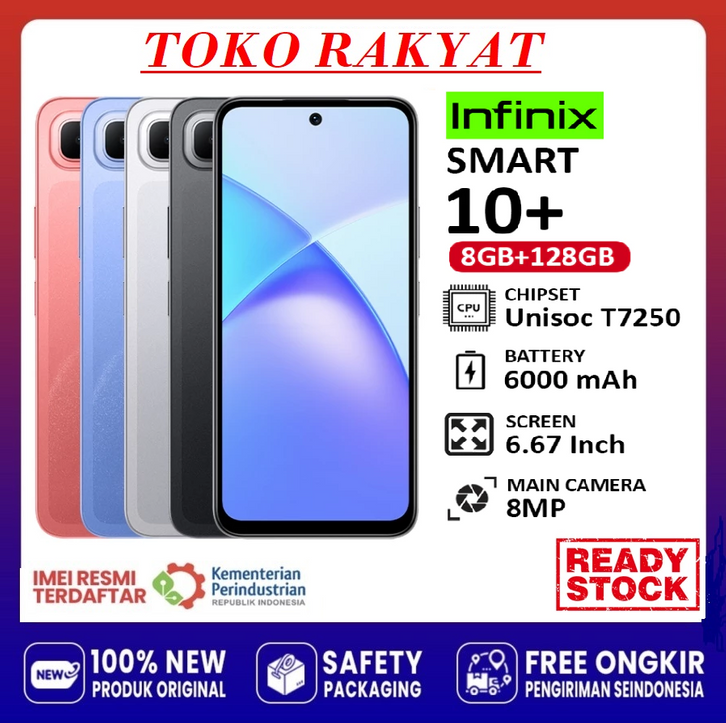 (BEBAS ONGKIR) Hp INFINIX SMART 10 PLUS 8+128GB NFC | Unisoc T7250 | Camera 8MP | Batery 6000mAh