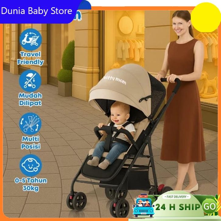 Kitty Mom Stroller Bayi Lipat Travelling Newborn Cabin Size Dorong Travel Friendly Mudah Dilipat Multi Posisi 0-5 Tahun