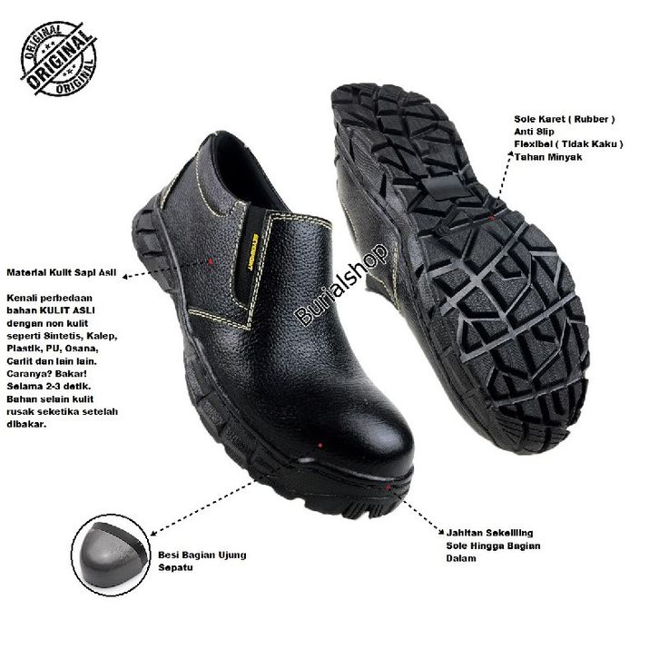 Sepatu Safety Kulit Sapi Asli Slip On Original Septi Pria Ujung Besi Septy Slop Selop Kerja Lapangan Proyek AWET