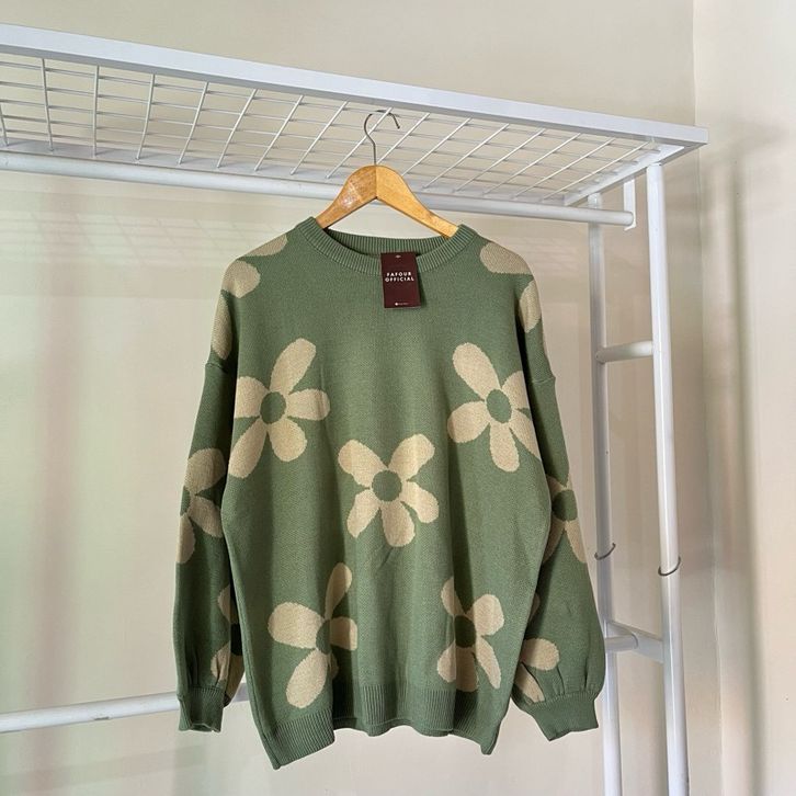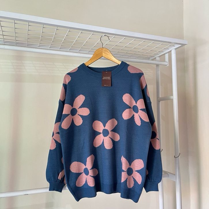 FAFOUR Emma Sweater Rajut Wanita Bunga Flowers Oversize Knitwear TOP PRODUCT