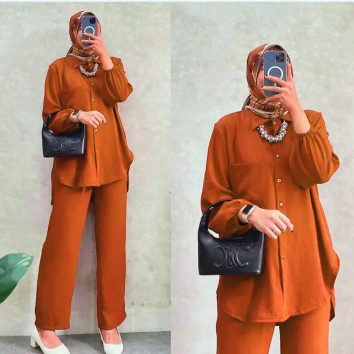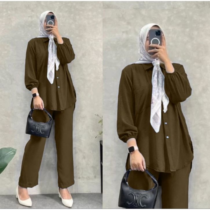 BAJU LEBARAN 2025 SETELAN AMANDA BUSUI CRINGKLE AIRFLOW - ONE SET KEMEJA AMANDA CRINKLE
