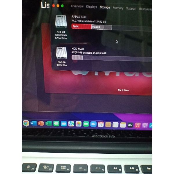MACBOOK PRO CORE I5 RAM 16GB SSD 512GB HDD500GB MD101 MONTEREY MULUS
