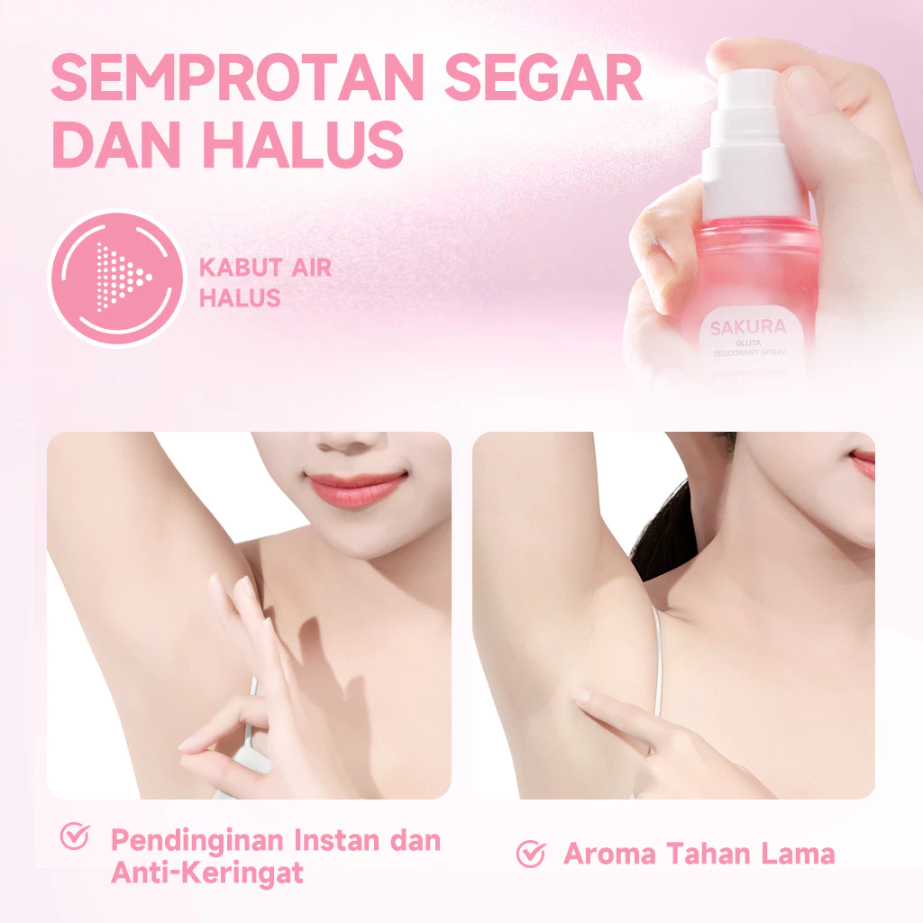 GMEELAN Sakura Gluta Deodorant Spray 50ml Antiperspiran cepat Sterilisasi & penghambatan rasa