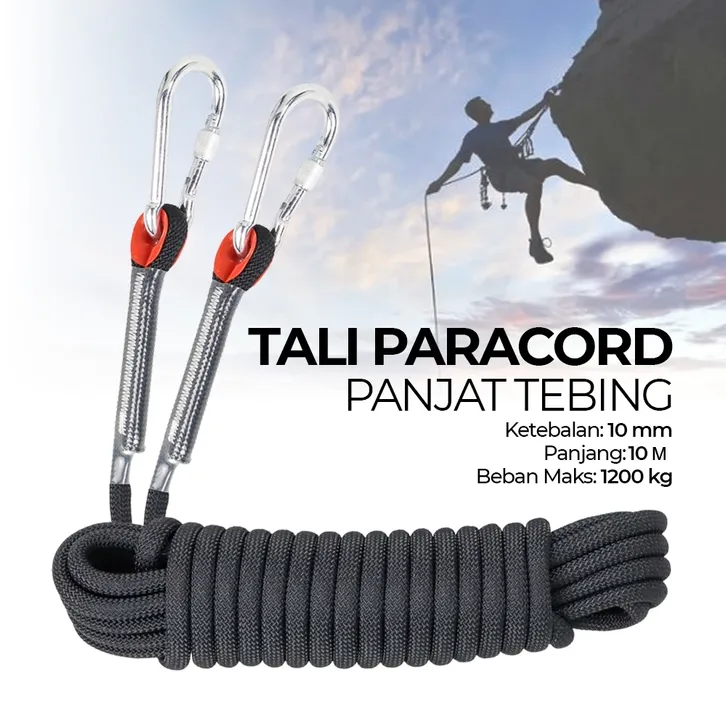 [GAJIAN SALE] Tali Paracord Panjang Tebing Climbing Rope 10mm 10 Meter - 20 Meter + Steel Buckle