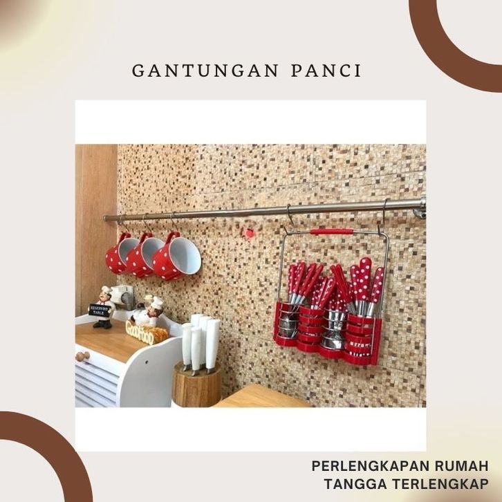 GANTUNGAN PANCI DAPUR PIPA STAINLESS RAK BUMBU DAPUR GANTUNG TEMPEL DINDING 100 CM ORI DAN KOKOH