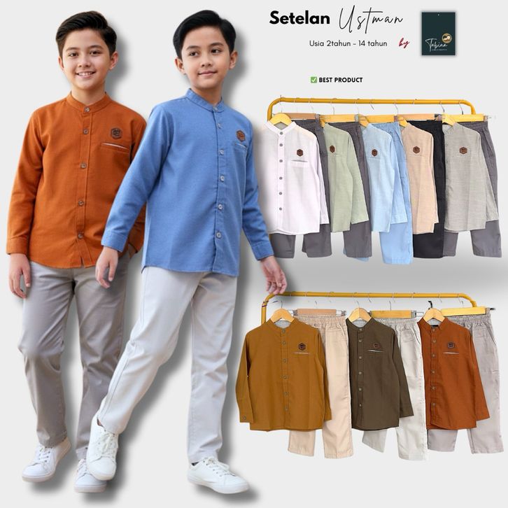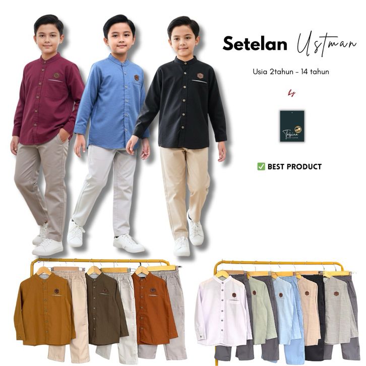 Koko Anak Laki Laki Sampai Remaja Lengan Panjang Tabina Seri Ustman Usia 2 - 14 Tahun Setelan Kemeja Koko Lebaran 2026