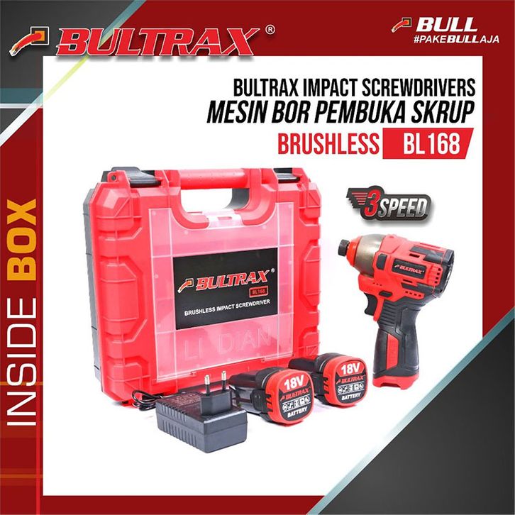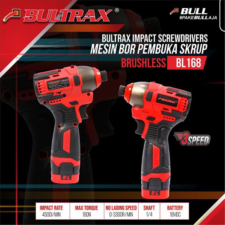 Bultrax Bor Impact Screwdriver Mesin Pembuka Skrup BL168 Brushless 2 Battery 18VDC Torque 160N